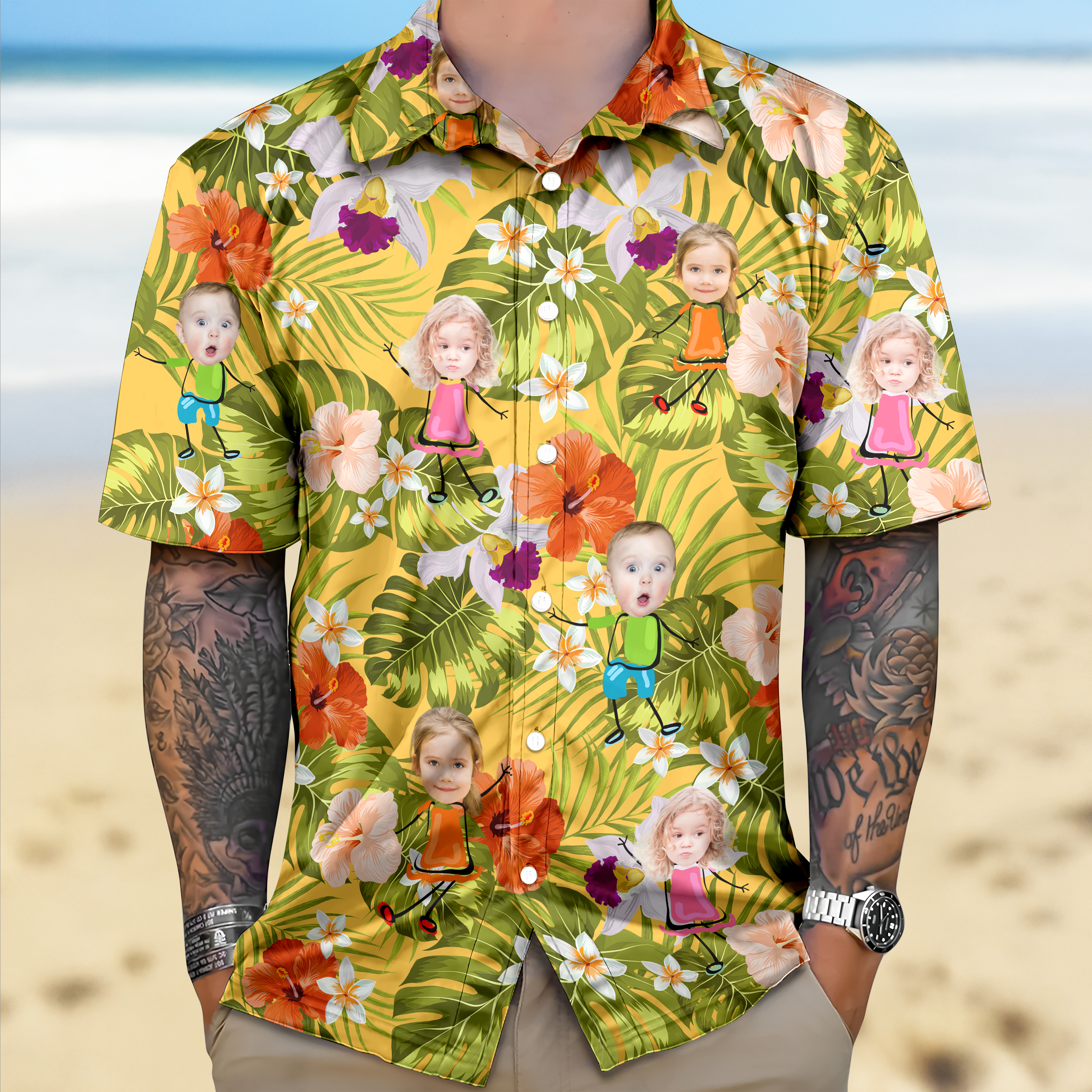 Looking for the perfect gift? Look no further! Our custom photo Hawaii shirt is the ideal present for any family member or friend. With the option to personalize with a funny kids photo, this shirt will bring joy and laughter to any occasion. Order yours today!