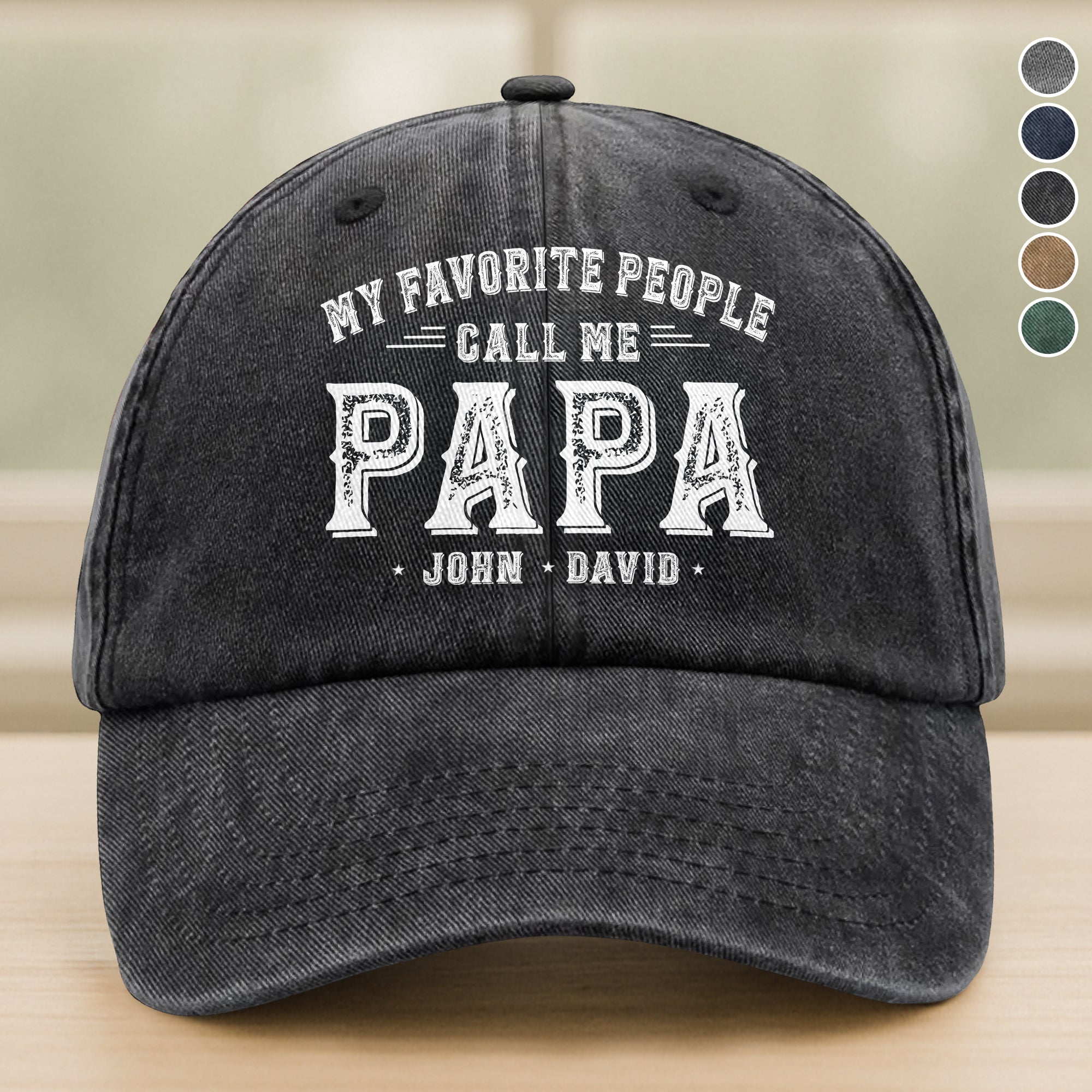 My Favorite People Call Me Daddy - Personalized Washed Denim Baseball Cap HO82 894420