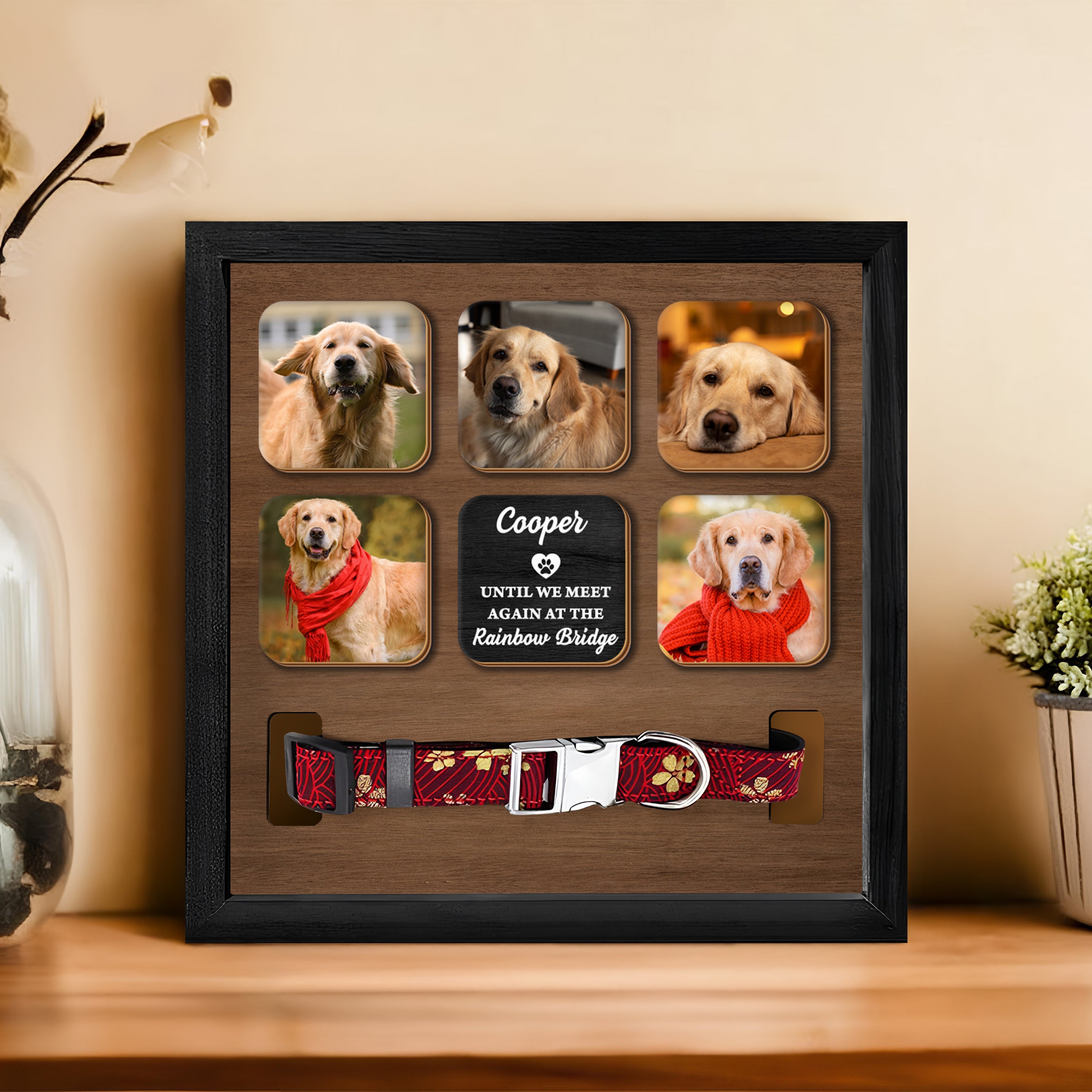 Honor the memory of your beloved dog with this Custom Photo Memorial Collar Frame. Crafted from two layers of wood, it offers a heartfelt way to keep your pet’s spirit close. Perfect for dog lovers, this elegant frame beautifully displays a cherished photo, serving as a lasting tribute until you meet again. Its timeless design adds warmth and meaning to any space, making it a touching keepsake for your home.