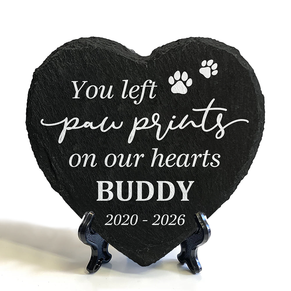 A personalized memorial heart-shaped stone featuring your pet’s paw prints and custom name, designed to keep their memory close to your heart. Elegant and meaningful, it’s a heartfelt keepsake for anyone cherishing a beloved furry companion.