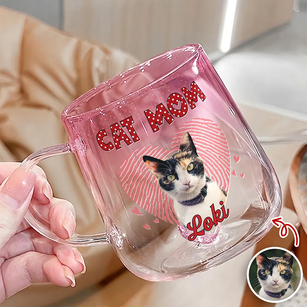 Custom Photo Dog Mom Cat Mom Pink Gradient Glass Mug - Gift For Dog Cat Mom, Mother's Day HO82 901768