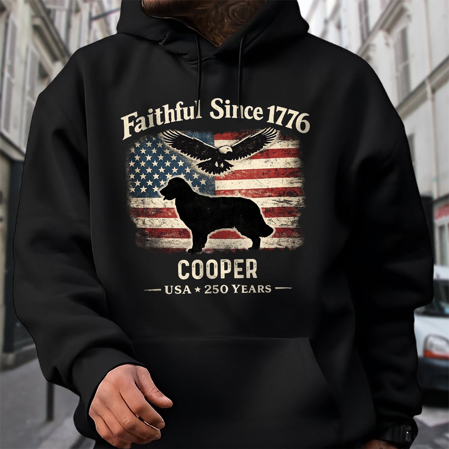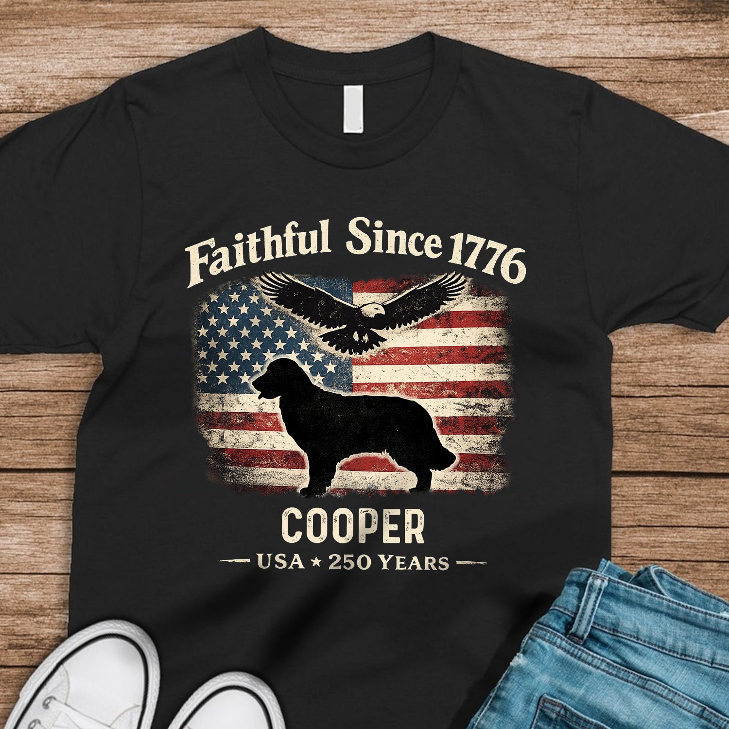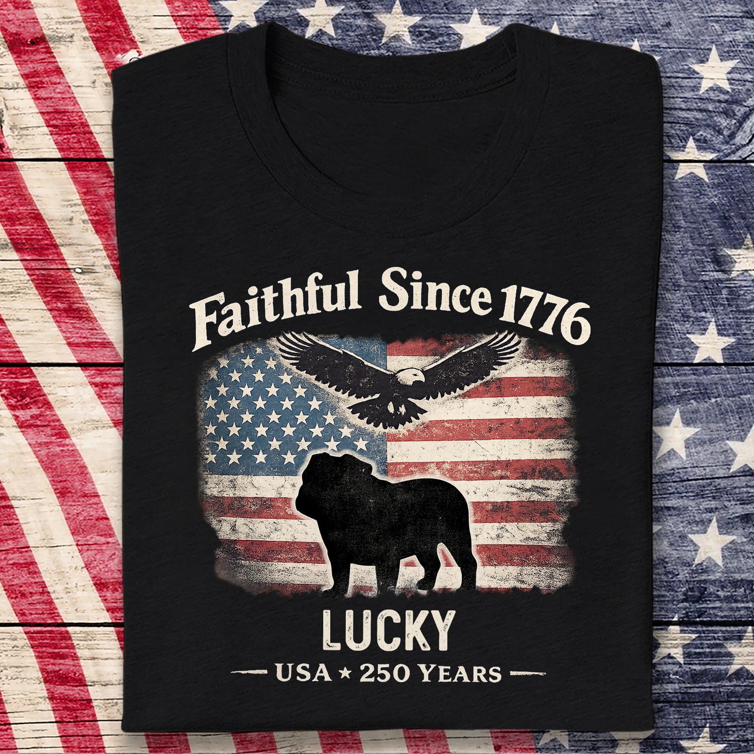 Celebrate America's legacy with this patriotic dark shirt featuring a custom dog design and "Faithful Since 1776" messaging. Perfect for honoring 250 years of USA history, this comfortable tee combines timeless patriotism with a unique canine twist. Ideal for dog lovers and history enthusiasts alike, it makes a meaningful statement piece for Independence Day, veterans' events, or everyday wear. Quality construction ensures lasting comfort and durability.