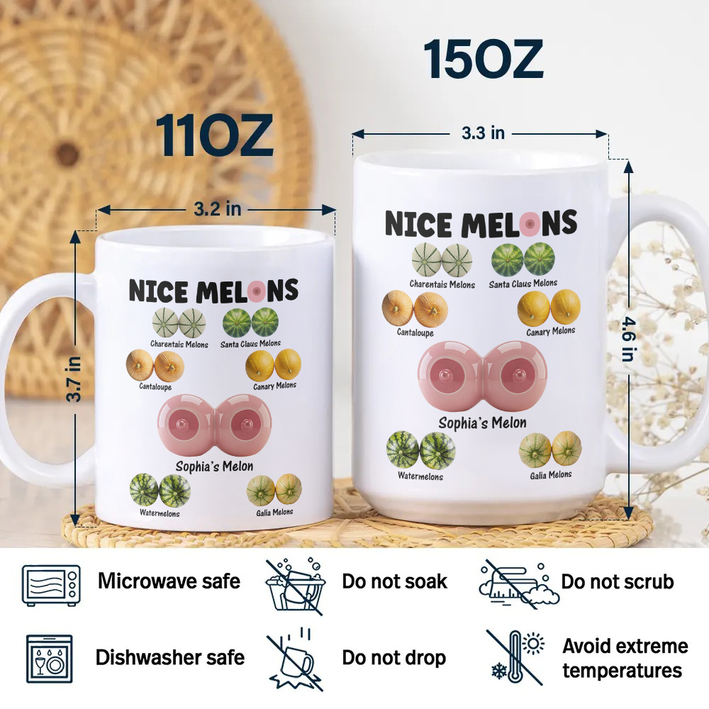 Surprise your special someone with this playful Custom Name Nice Melon White Mug—the perfect Valentine's Day gift that combines humor with heartfelt charm. Personalize it with her name to create a one-of-a-kind keepsake she'll treasure. Whether she's your wife, girlfriend, or that special someone who appreciates witty humor, this naughty-but-nice mug delivers laughs every morning. Crafted for daily use, it's a thoughtful present that shows you know her sense of humor. Make this Valentine's Day unforgettable with a gift that's as unique and wonderful as she is.