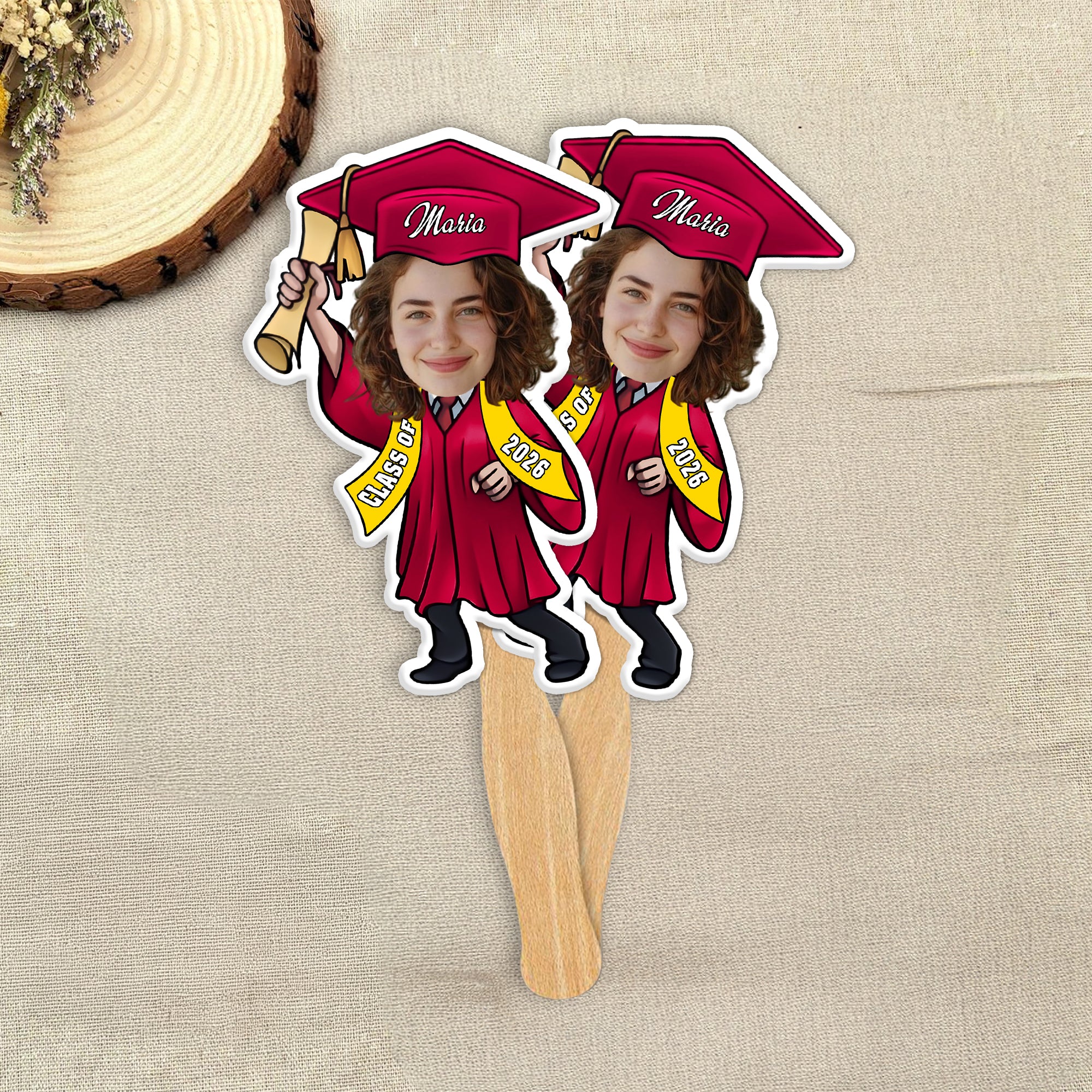 Celebrate your graduate's special day with our Custom Photo Graduate Personalized Face Fans! These unique fans make the perfect gift and personalized party decor. Keep your loved ones cool while proudly displaying their graduate's photo. Cheers to their achievements with this special touch.