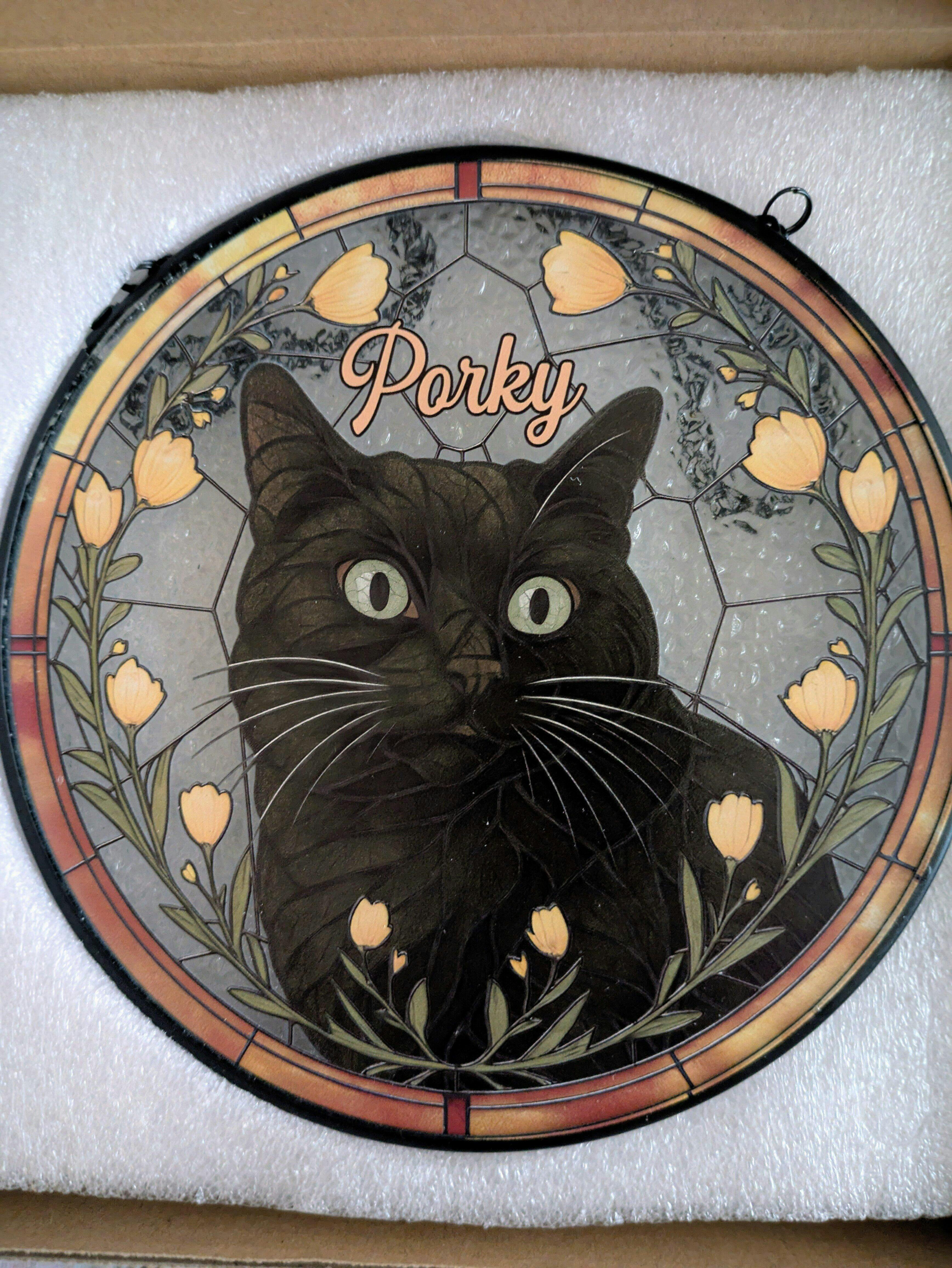 Honor the memory of your beloved pet with this Custom Dog Photo With Flower Memorial Stained Glass Suncatcher. Crafted to capture your dog’s unique spirit, it beautifully combines a personalized photo with delicate floral accents. Hang it in a sunny window to create a warm, colorful tribute that brings comfort and keeps your pet’s presence alive every day. This thoughtful memorial gift offers a lasting way to cherish your furry friend’s love and companionship.