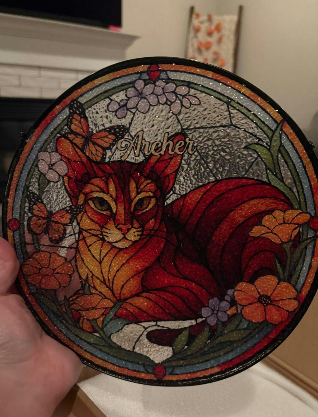 Custom Cat Photo With Flower Memorial Stained Glass Suncatcher, Pet Loss Gift HO82 894328