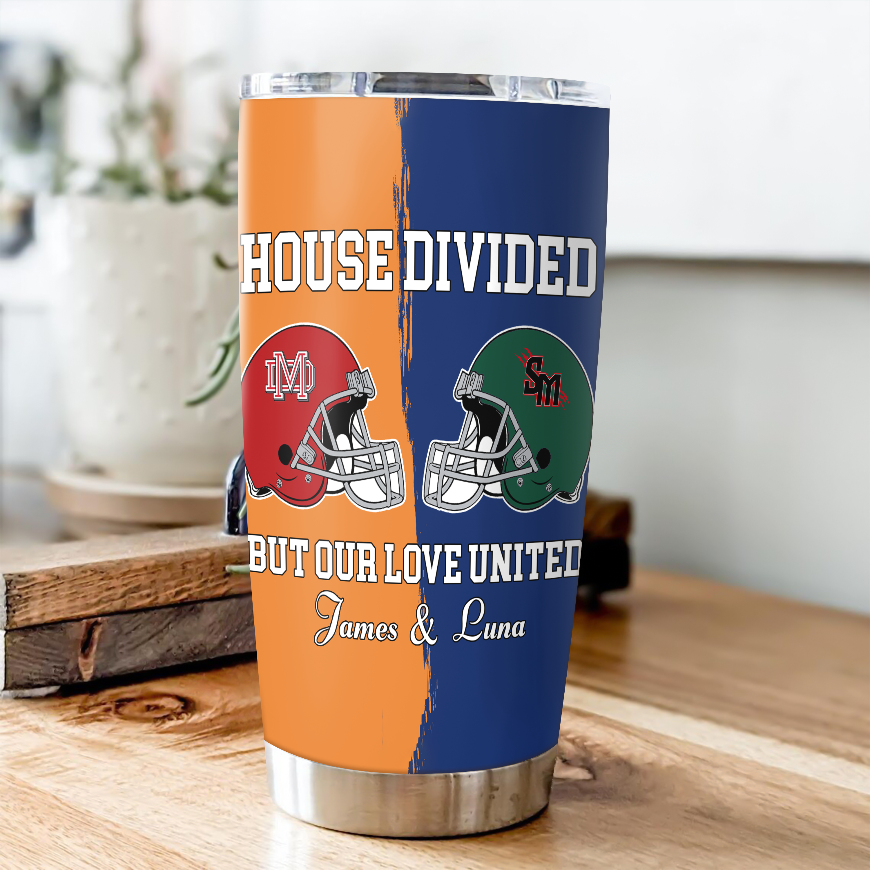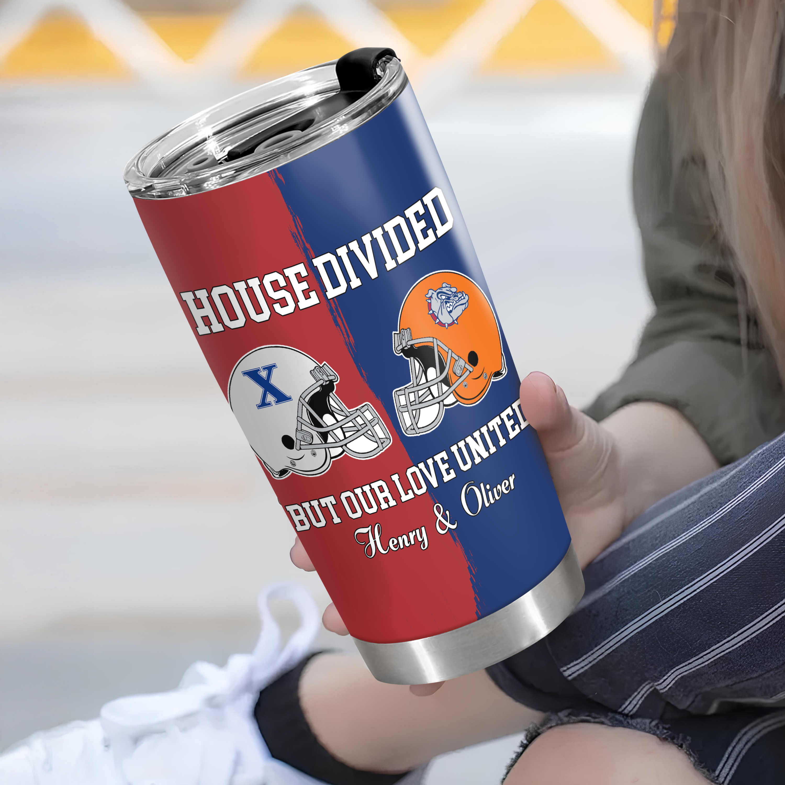 Show your team spirit without compromising your relationship. This custom Super Bowl tumbler lets couples personalize their names while declaring "House Divided But Our Love United"—the perfect blend of friendly rivalry and devotion. Built tough with superior insulation, it keeps beverages cold through every game day. Whether you're rooting for opposite teams or just love the sport together, this thoughtful gift proves that shared passion strengthens bonds, not breaks them.