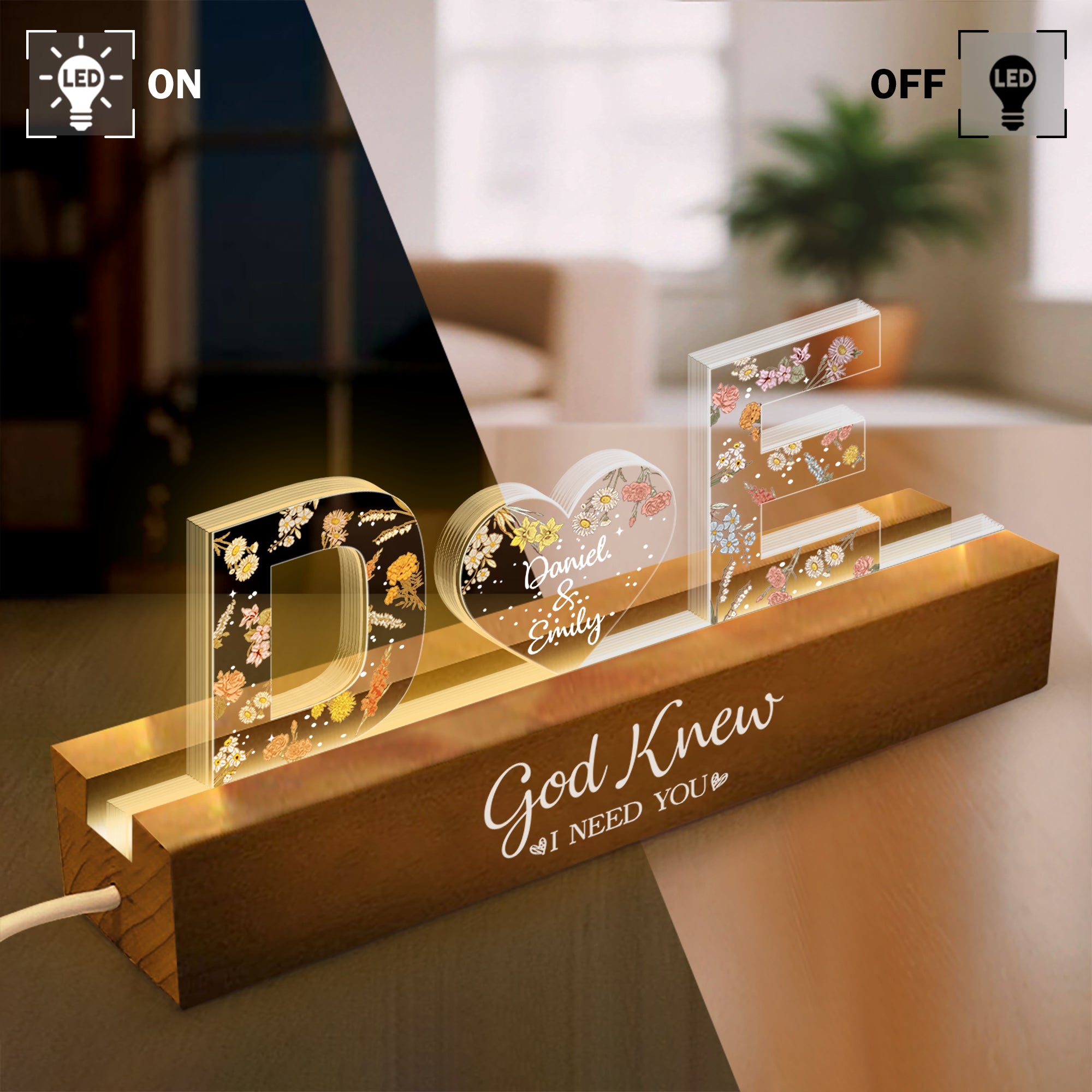 Illuminate your love story with this stunning personalized LED night light, custom-crafted with your names in elegant lettering. Perfect for newlyweds, anniversaries, or any couple celebrating their bond, this romantic accent piece transforms any room into a warm, intimate sanctuary. The soft, ambient glow creates the perfect atmosphere for memorable moments together. Ideal as a heartfelt wedding gift, anniversary present, or a special token of affection that says "I love you" every single night. Make your space uniquely yours with this one-of-a-kind keepsake that beautifully captures your connection.