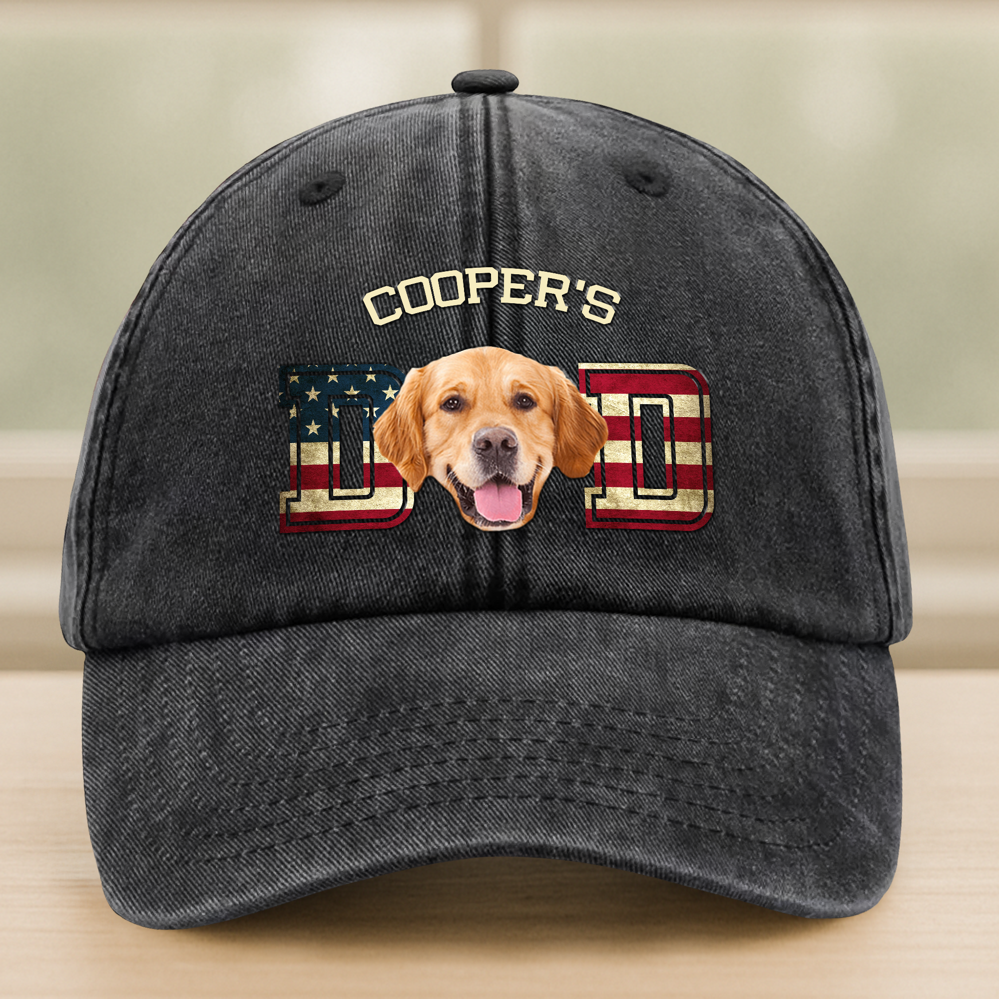 Custom Photo Dog Cat Dad Washed Denim Baseball Cap Ver US Flag Vintage HA75 892530