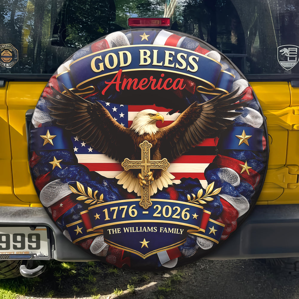 Show your patriotic pride on the road with this personalized “God Bless America” eagle 1776–2026 tire cover. Customize it with a name or special detail to create a bold and meaningful design. Durable and eye-catching, it’s perfect for protecting your spare tire while celebrating America’s 250th anniversary in style.