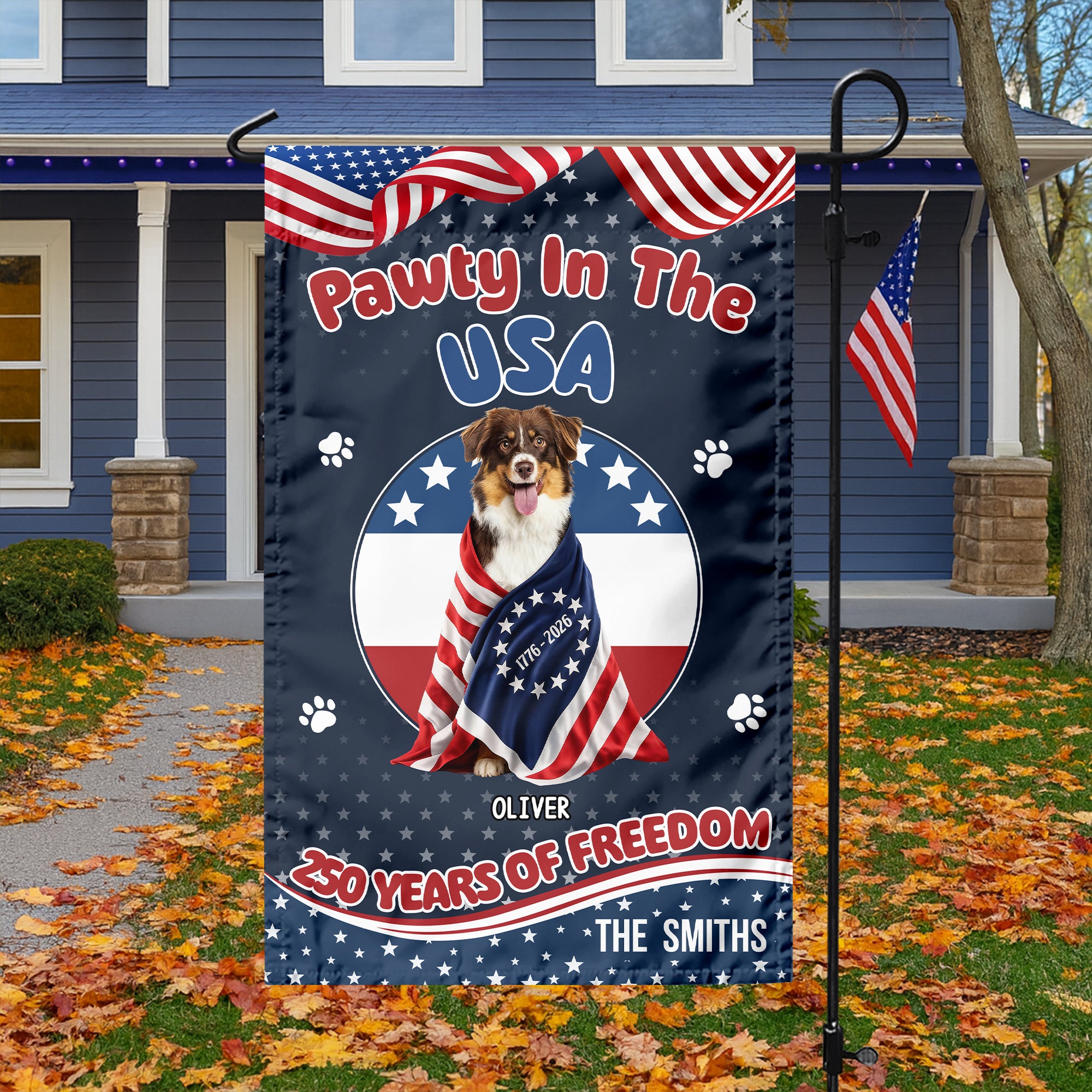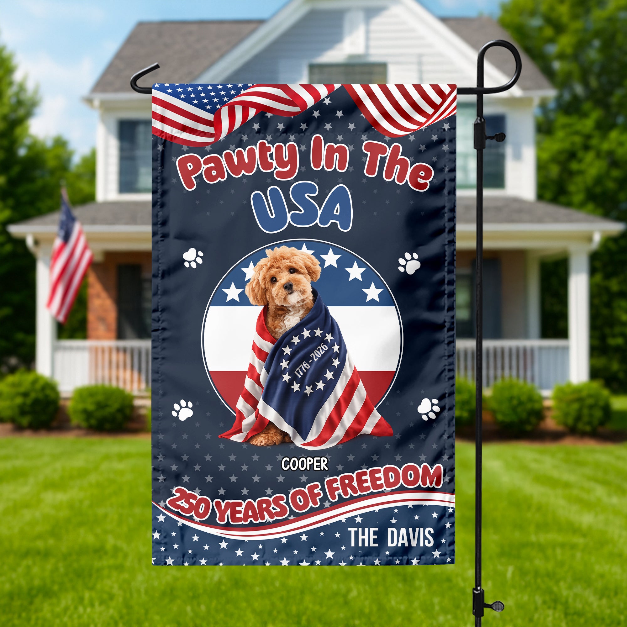 Custom Photo Pawty In The USA 250 Years Of Freedom Dog Garden Flag HA75 920302