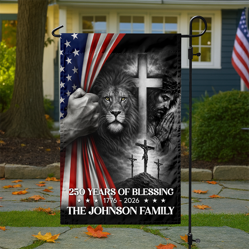 Honor 250 years of history and heritage with this Custom Family Name “250 Years Of Blessing 1776–2026” Garden Flag. Personalize it with your family name to create a meaningful and patriotic outdoor display. Perfect for gardens, walkways, or front yards, this decorative flag proudly celebrates America’s 250th anniversary while adding a warm, welcoming touch to your home.