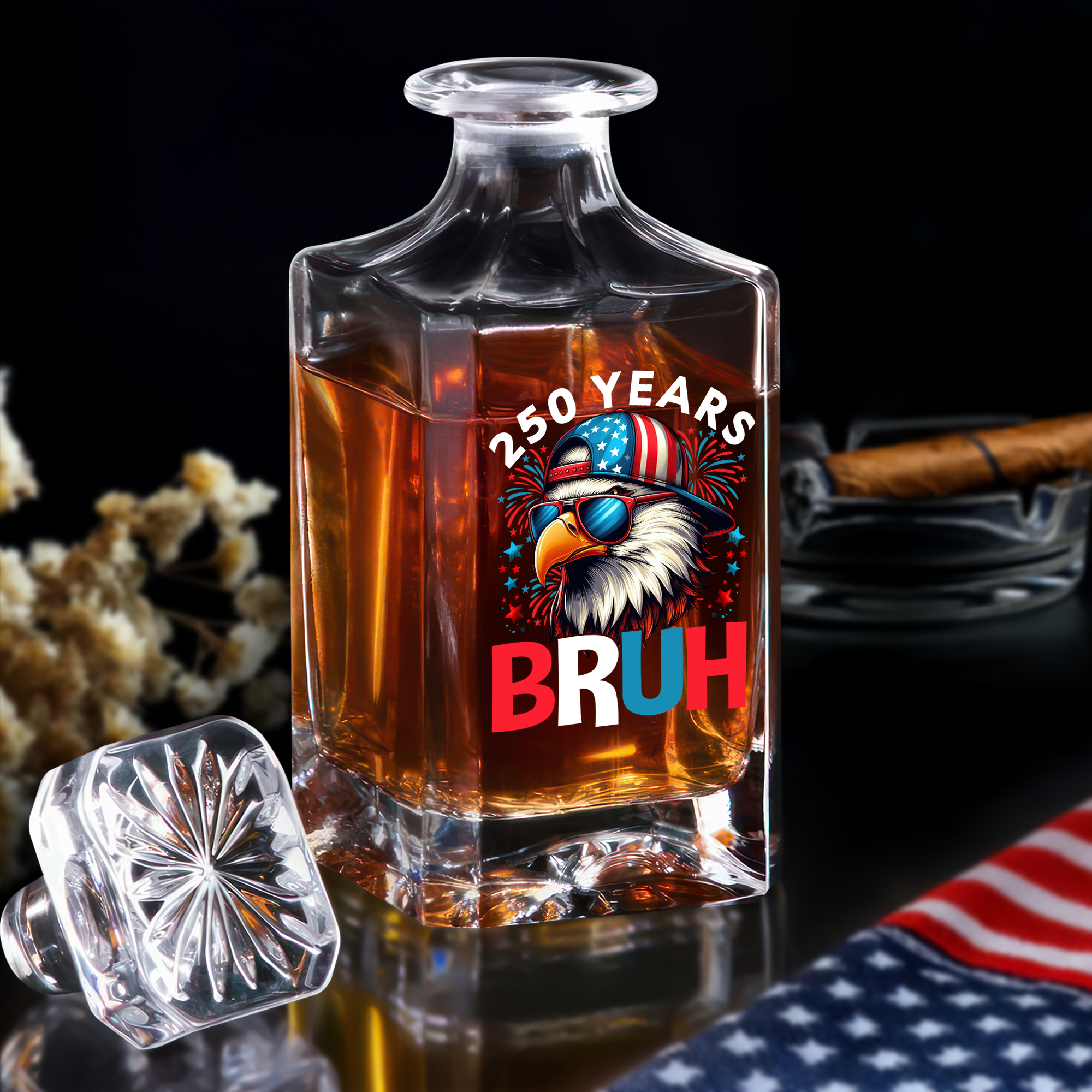 Celebrate 250 years of American pride with this elegant 250th Birthday Eagle Flag Decanter. Featuring a classic eagle and flag design, it’s perfect for honoring 1776–2026 milestones. Crafted to impress, this decanter adds a distinguished touch to any bar, making your celebrations memorable and stylish. Raise a glass to history and heritage with this timeless tribute.