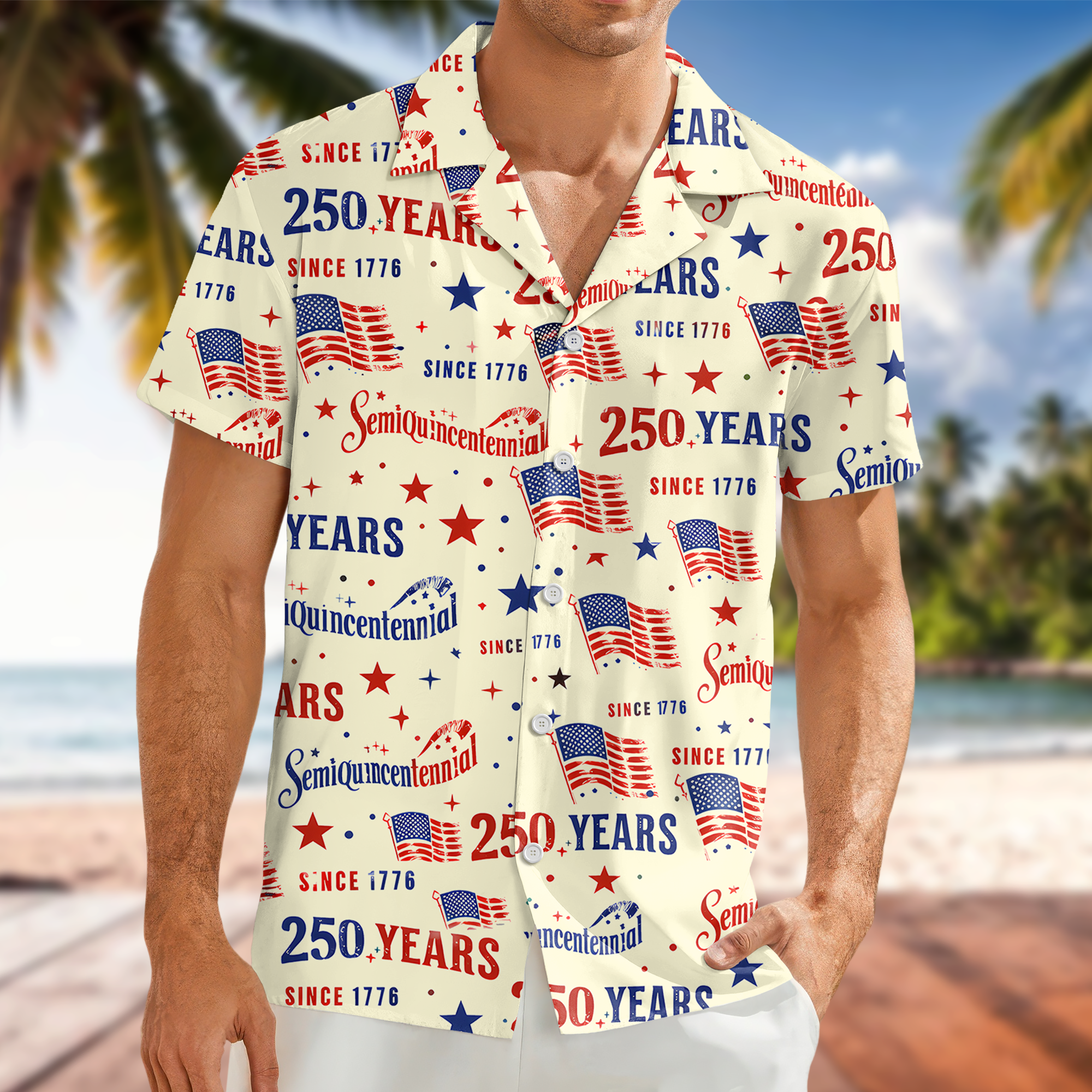 Celebrate America's 250th with this personalized Hawaii shirt. Add your name or custom message to create a unique keepsake that captures this historic milestone in style. Vibrant, comfortable, and perfect for patriotic gatherings and memorable gifts.