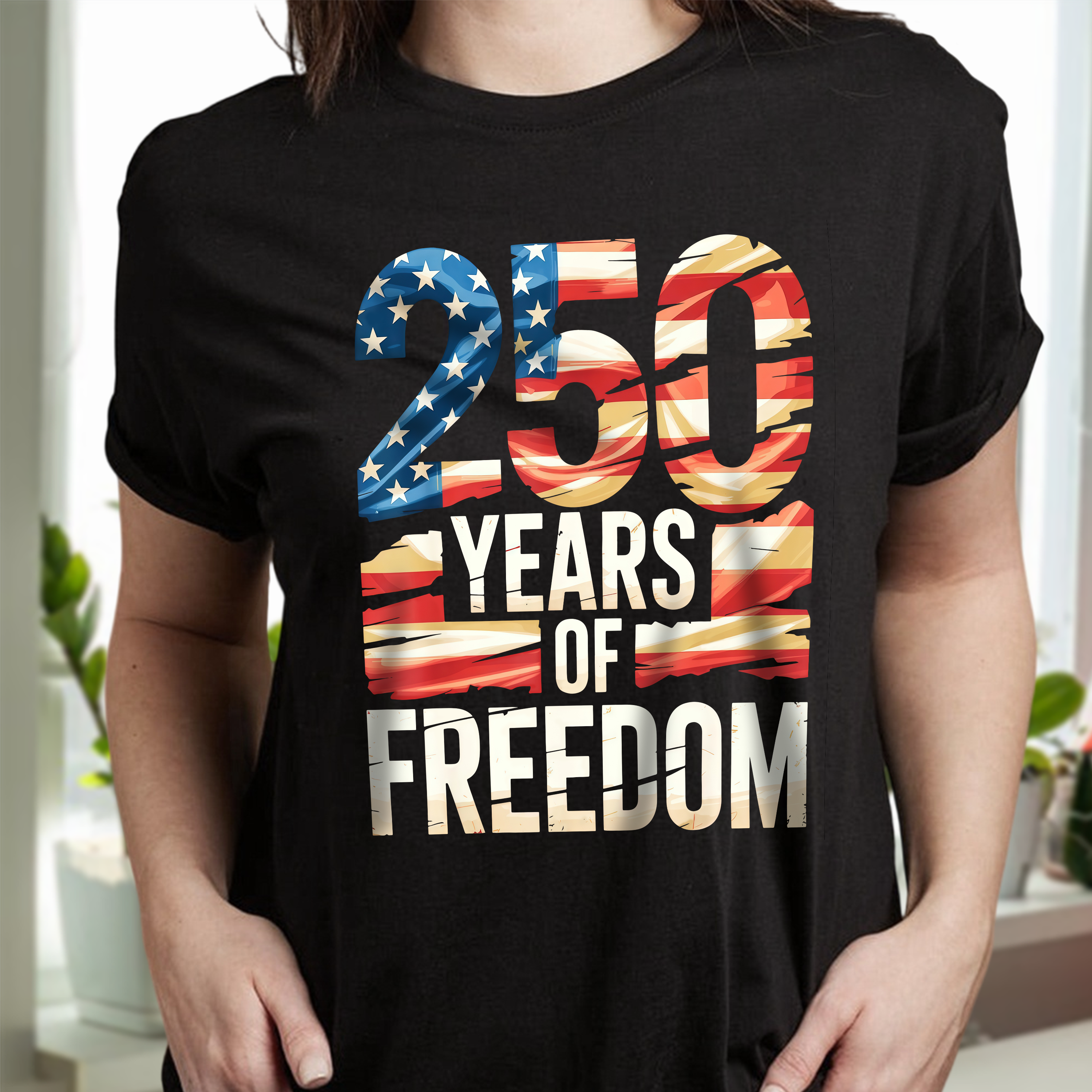 Celebrate American heritage with this bold 250 Years of Freedom front shirt. Featuring striking graphics that honor the nation's legacy, this tee combines comfort with patriotic pride. Perfect for Independence Day gatherings, casual outings, or showing your love for freedom. Made for those who wear their values with confidence. Ideal for history enthusiasts and proud citizens alike.