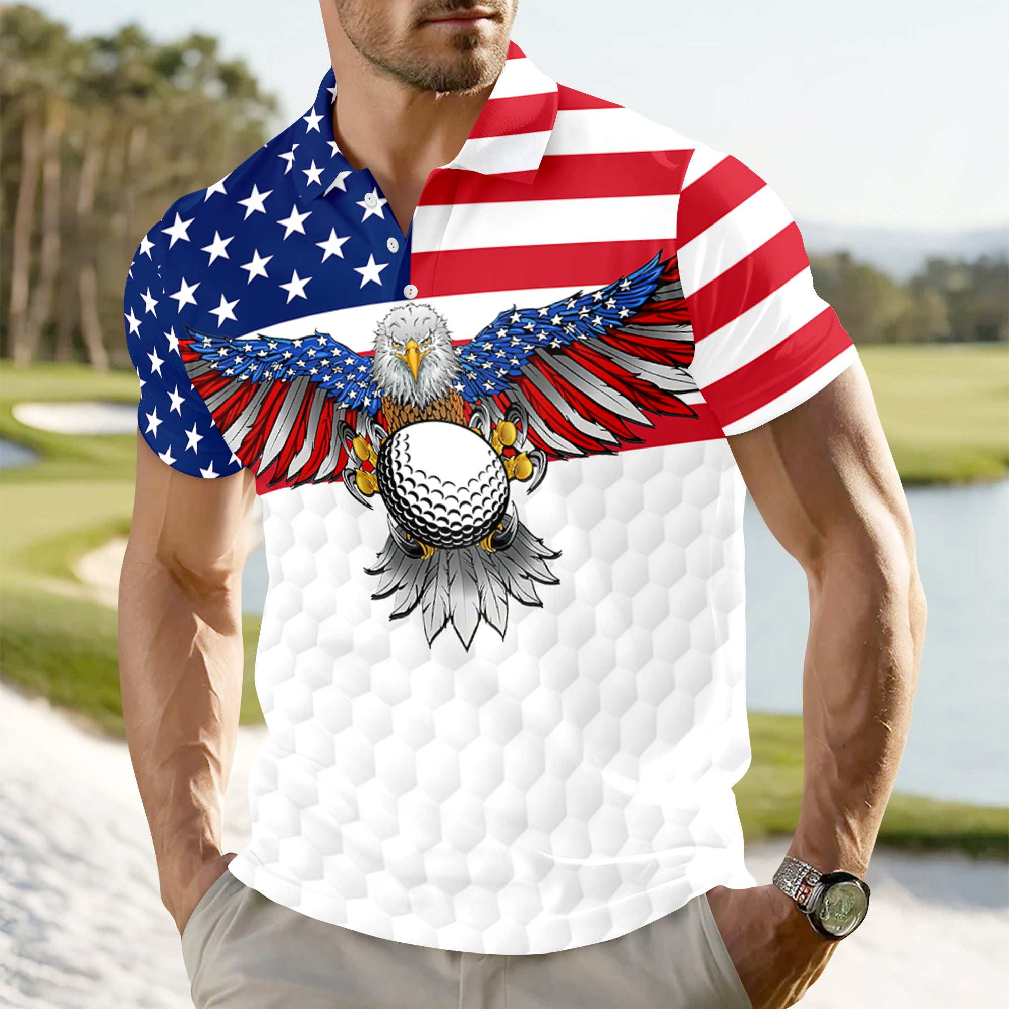 Celebrate patriotism with style in this personalized eagle polo shirt. Custom-embroidered with your name, it blends American pride with timeless elegance. Perfect gift for veterans, flag enthusiasts, or anyone who loves country. Premium quality ensures lasting wear and comfort.