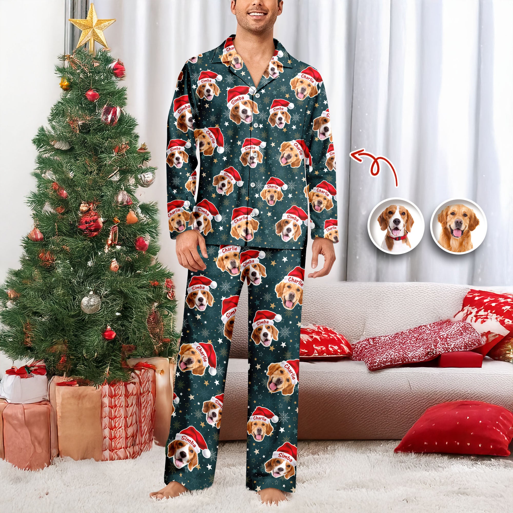 Celebrate the holiday season in cozy style with these Custom Dog Photo Santa Claus Matching Christmas Pajamas. Perfectly personalized with your furry friend's photo, they make a heartwarming gift for dog lovers. Whether for family gatherings or festive photos, these pajamas add a playful and unique touch to your Christmas traditions. Give a gift that brings smiles and lasting memories.