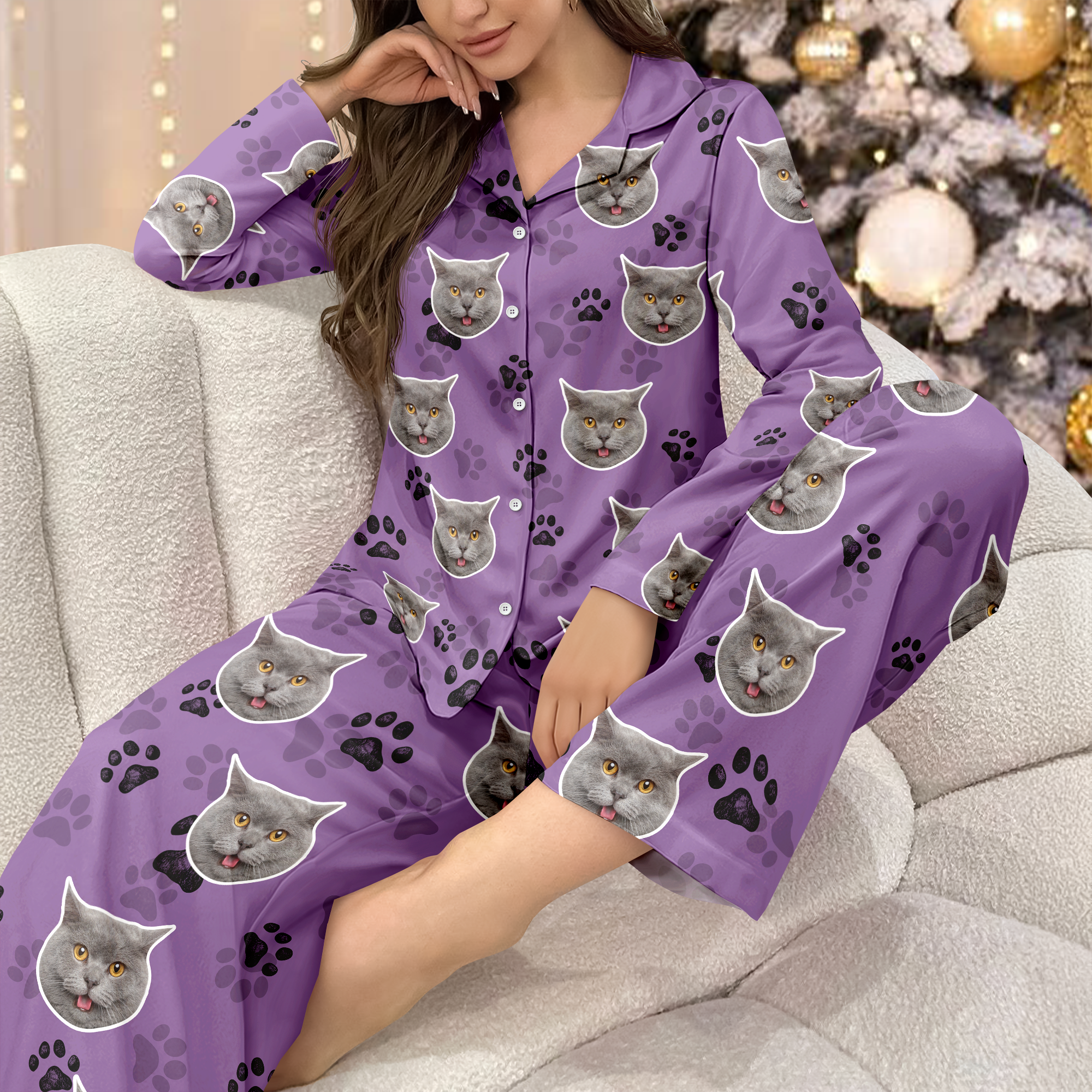 Wrap yourself in feline comfort with custom cat face photo pajamas designed for devoted cat enthusiasts. These personalized sleepwear pieces showcase your beloved kitty's unique personality printed on premium, soft fabric that feels luxurious against your skin. Whether you're treating yourself or gifting a fellow cat lover, these pajamas deliver warmth, style, and heartfelt charm. Drift off to sleep surrounded by your furry companion's sweet face—the perfect way to end each day with a smile.