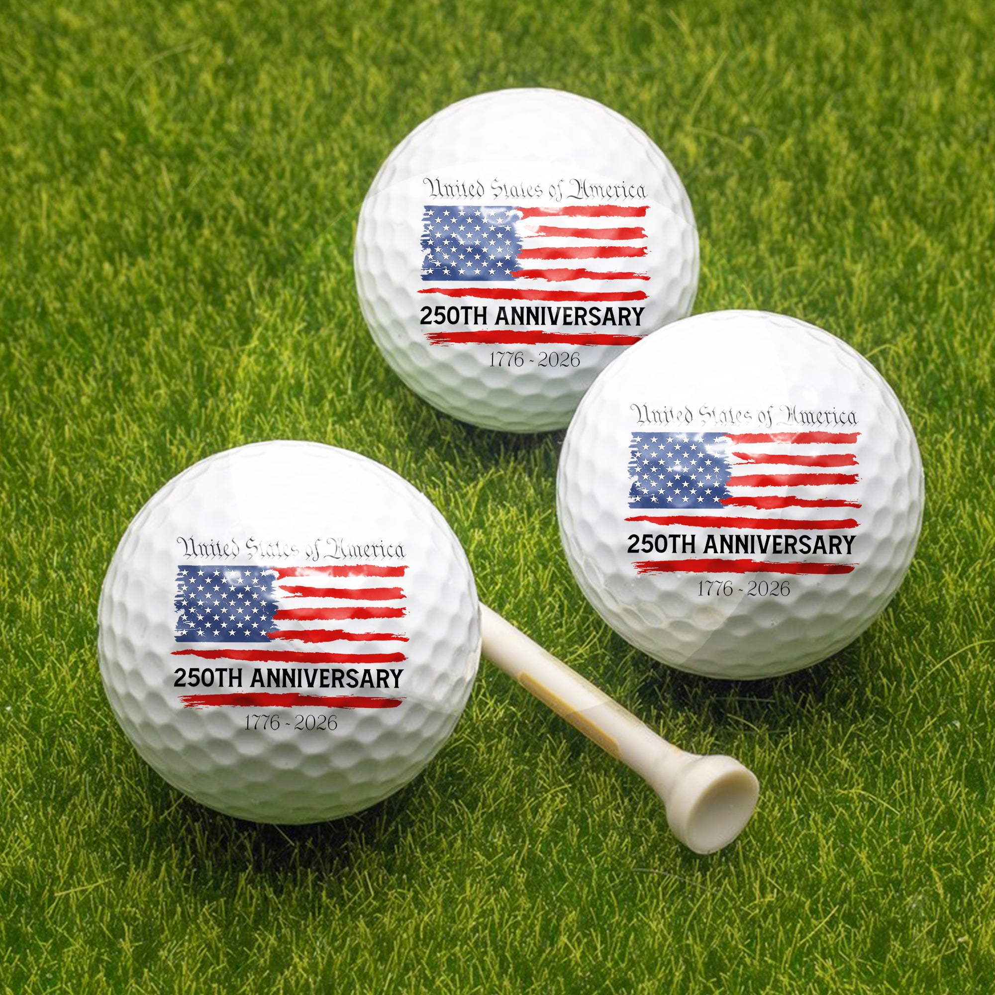 Celebrate 250 years of American pride on the green with this commemorative golf ball. Featuring a bold USA anniversary emblem (1776–2026), it’s perfect for patriotic golfers and collectors alike. A great gift for golf lovers who want to honor freedom with every swing.