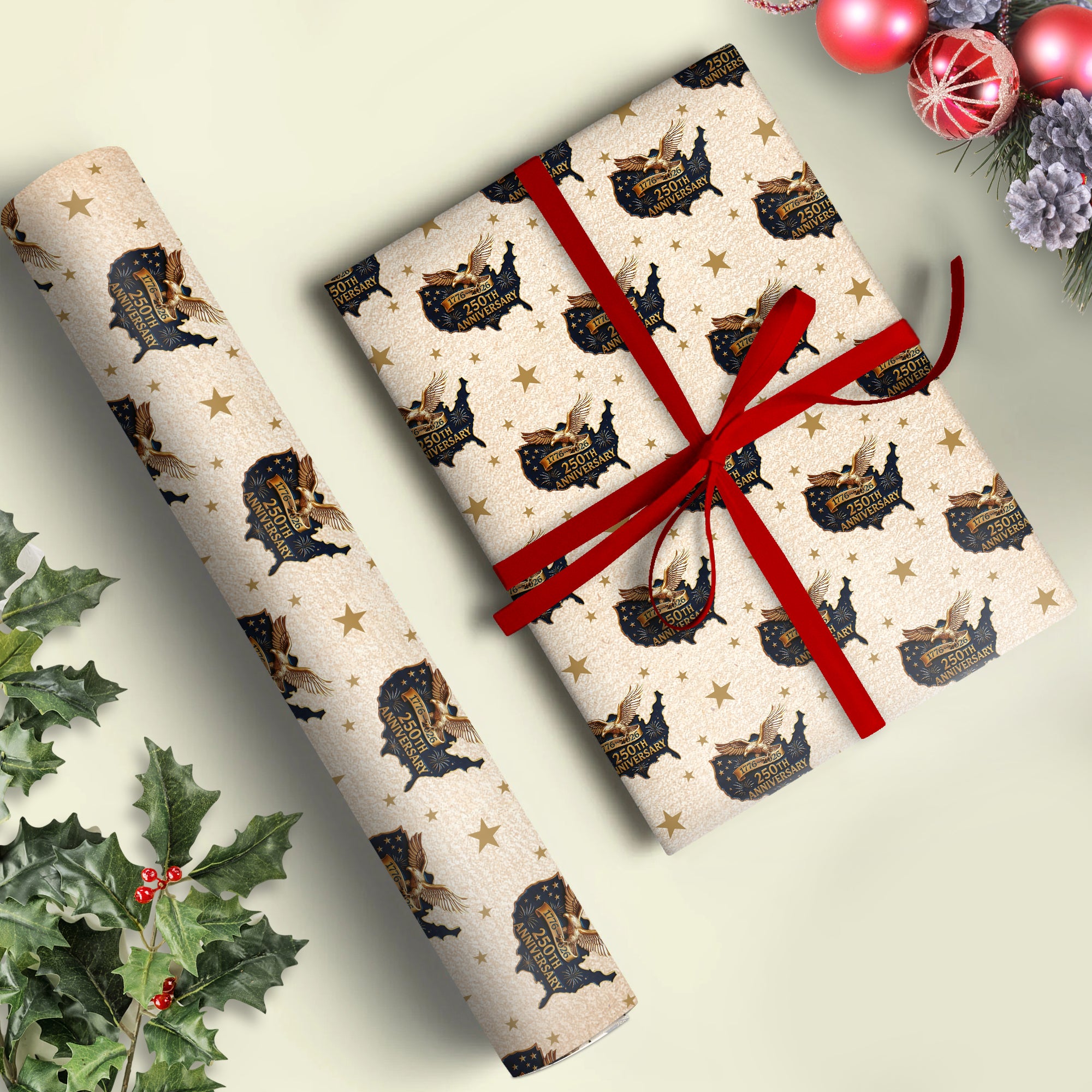 Mark this historic milestone with our exclusive 250 Years of America commemorative wrapping paper. Featuring patriotic design celebrating the nation's journey from 1776 to 2026, this premium wrap adds meaningful flair to any gift. Perfect for Independence Day celebrations, patriotic events, or honoring American heritage. Each sheet showcases vibrant colors and iconic imagery that captures the spirit of a quarter-millennium of American history. Make your presents as memorable as the occasion—wrap them in pride and tradition.