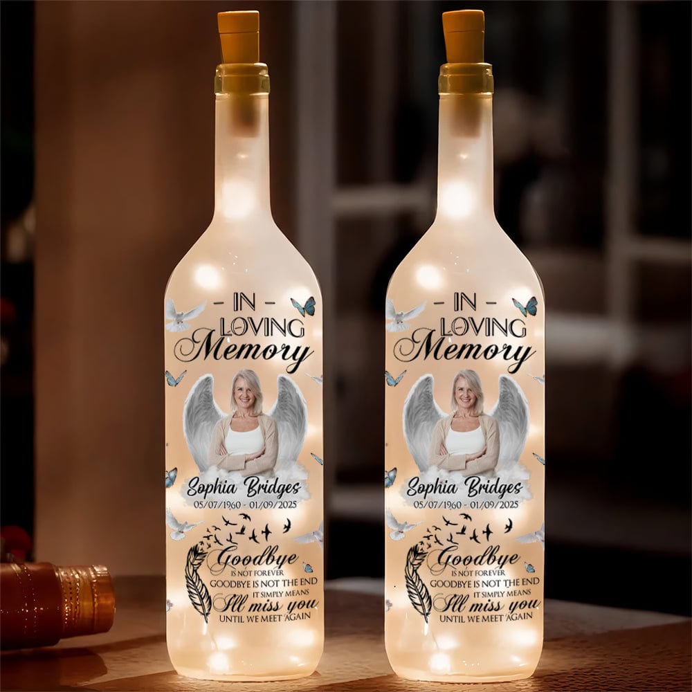 Treasure the memory of a loved one with our Custom Photo Memorial Bottle Lamp. This unique gift idea serves as a beautiful tribute, allowing their memory to shine on forever. A touching memorial that will be forever missed but never forgotten. #InHeaven #ForeverRemembered