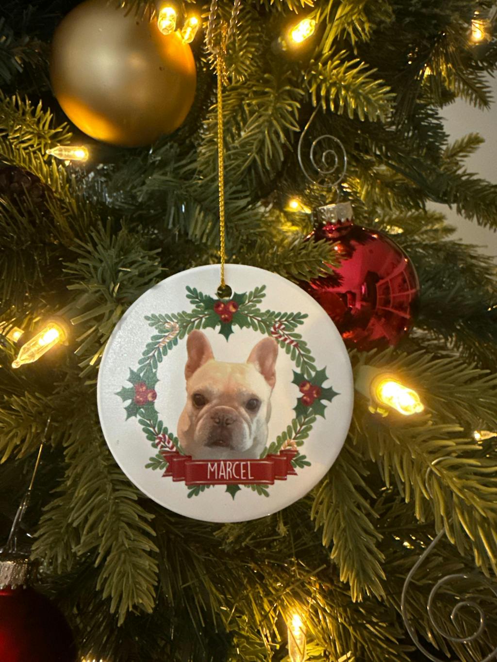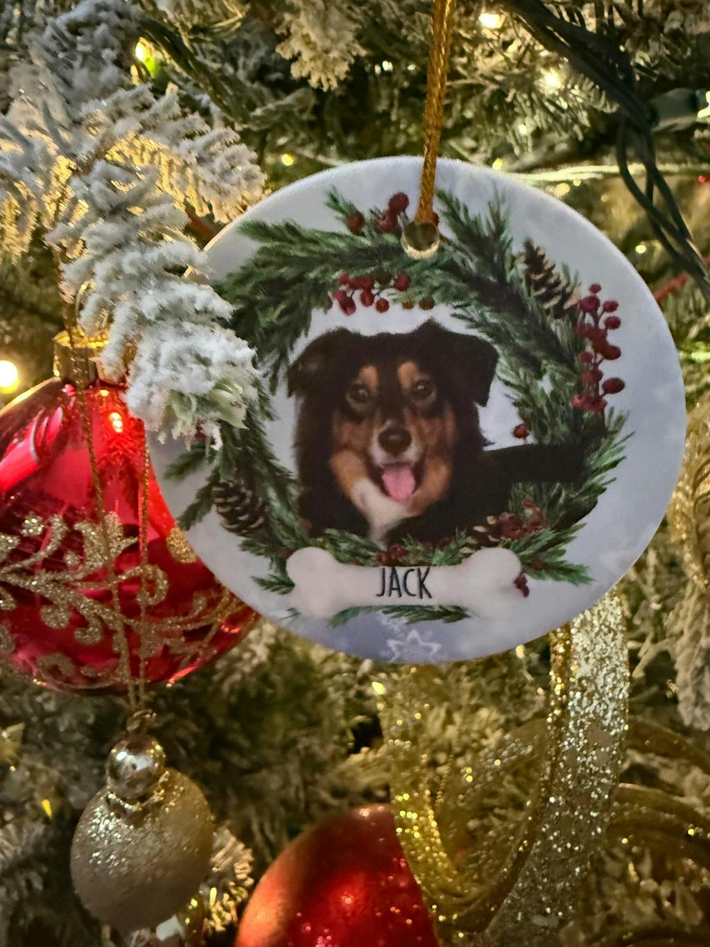 Give your pet the gift of a festive and unique look this Christmas with this personalized ornament. Perfect for any pet lover, this ornament features a custom photo of your beloved dog or cat, making it a truly personalized holiday decoration. Share your festive pet photos with family and friends!