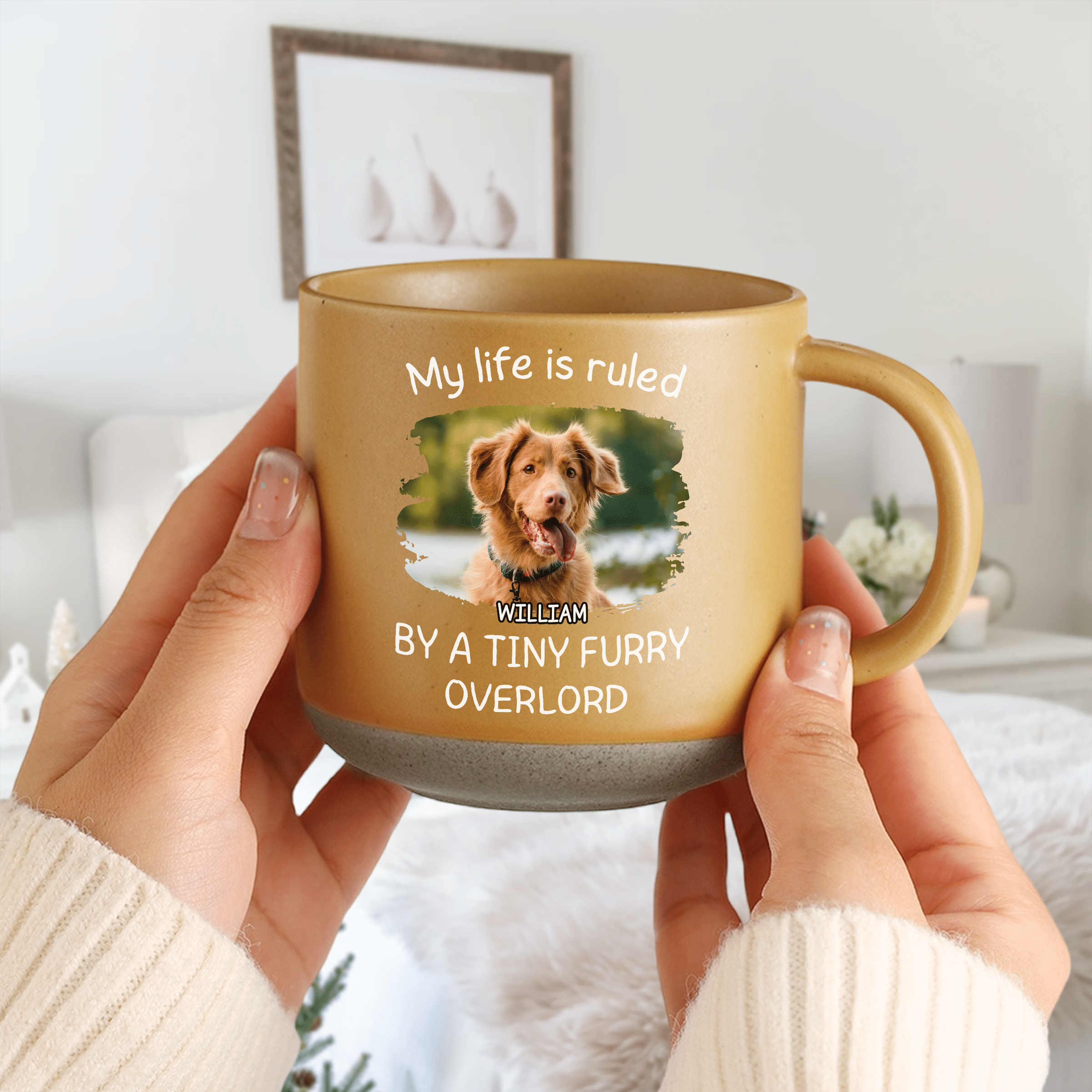 Declare your love for your furry overlord with this custom photo mug designed for dog lovers. Add your favorite photo and enjoy your daily coffee or tea in style. Perfect for yourself or as a gift for any pet parent!