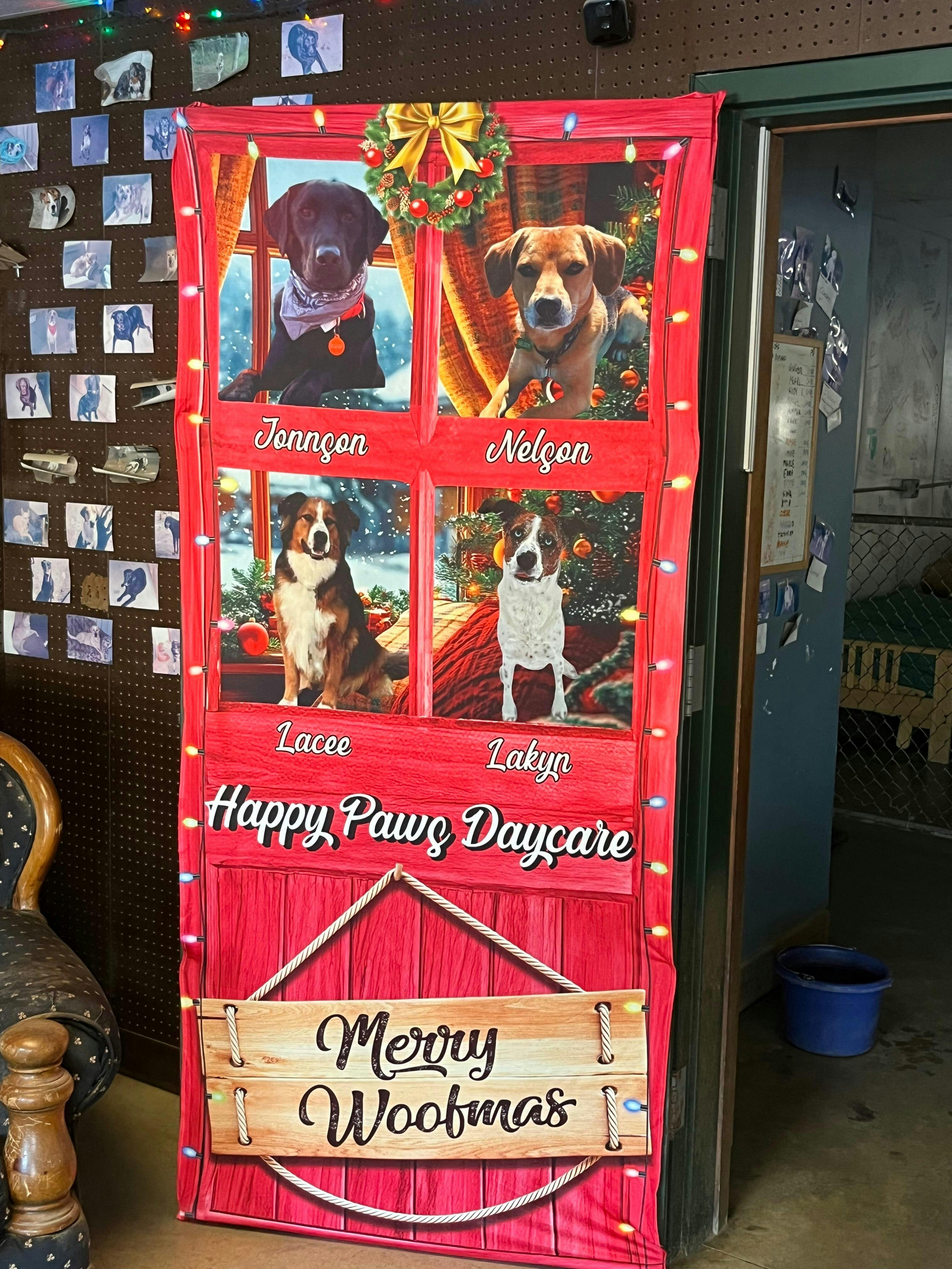 Celebrate the season with a personalized touch using this Custom Cute 3D Dog Merry Woofmas Christmas Door Cover. Crafted for dog lovers, its unique design adds festive charm and warmth to any entrance. Bring joy and holiday spirit to your home while showcasing your love for your furry friend in a delightful, eye-catching way.