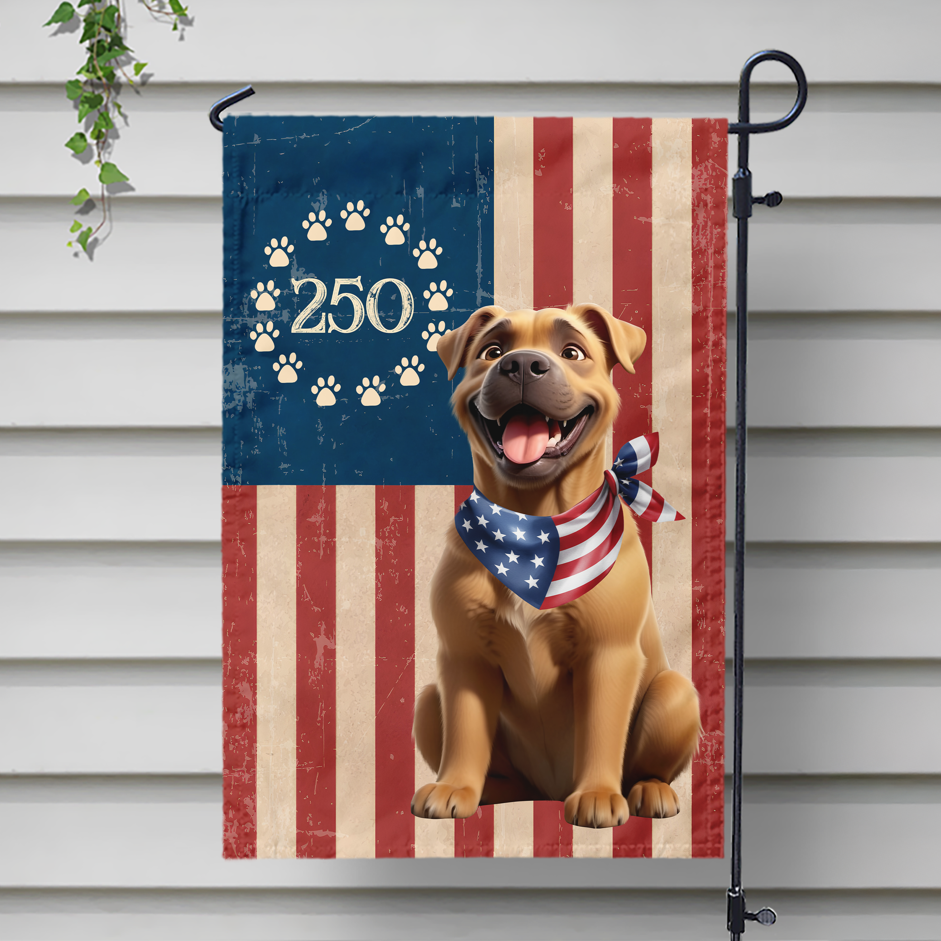 Celebrate America’s 250th anniversary with this personalised America dog garden flag, a perfect gift for dog lovers. Featuring a fun and patriotic design, it adds charm and personality to any outdoor space. Ideal for gardens, yards, or porches, this flag is a great way to show love for both your country and your furry friend.