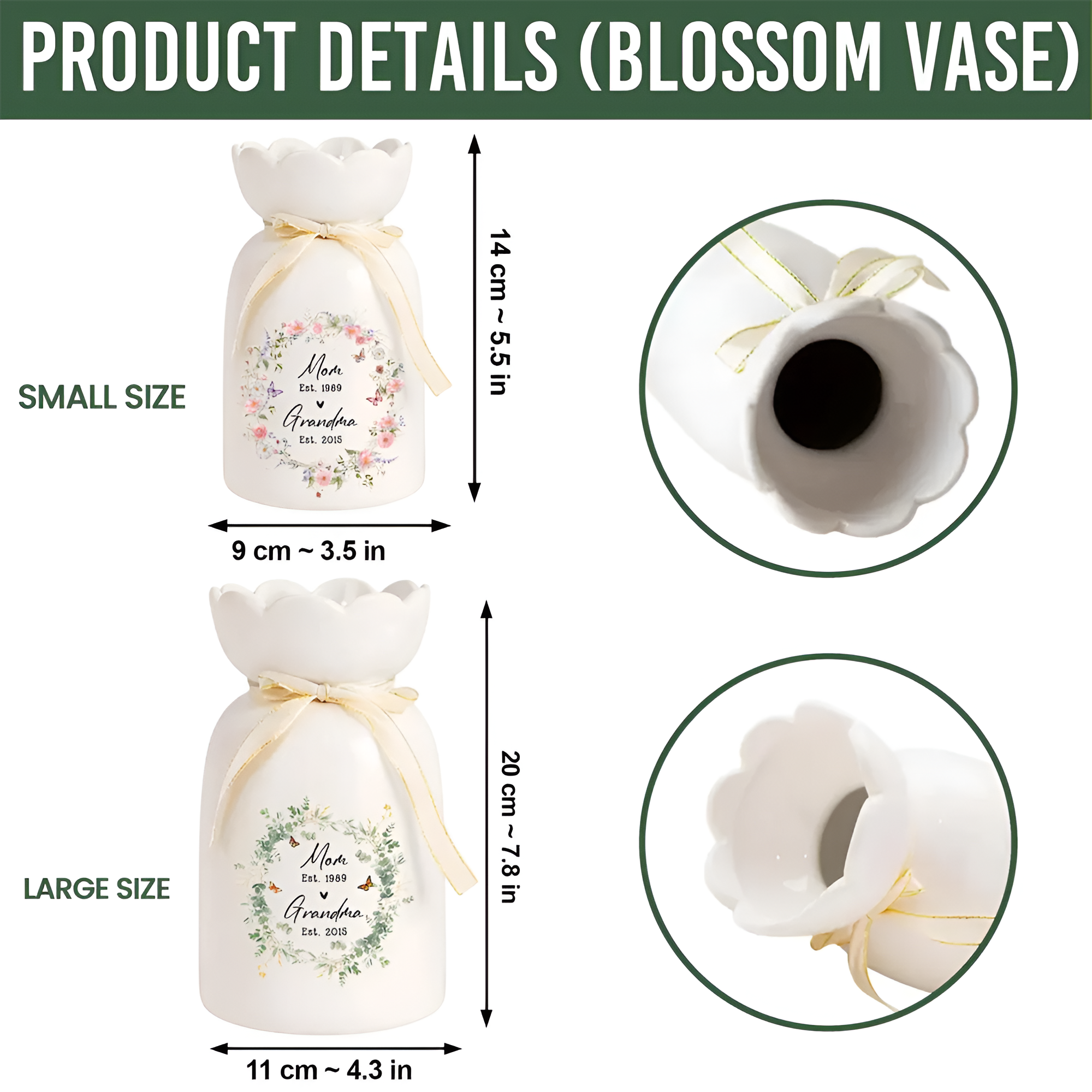 • Large: 25 cm (H) × 11 cm (Mouth) × 12 cm (Bottom)