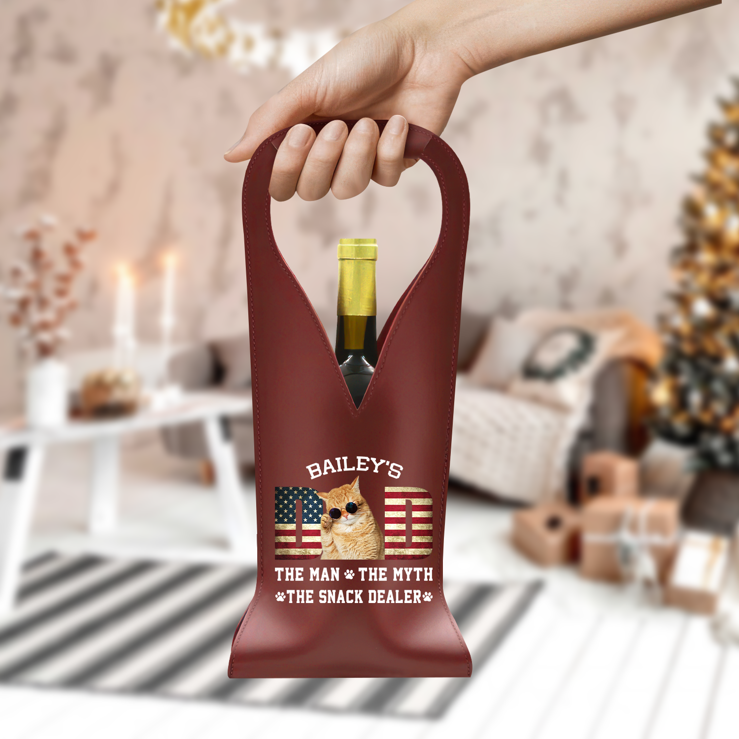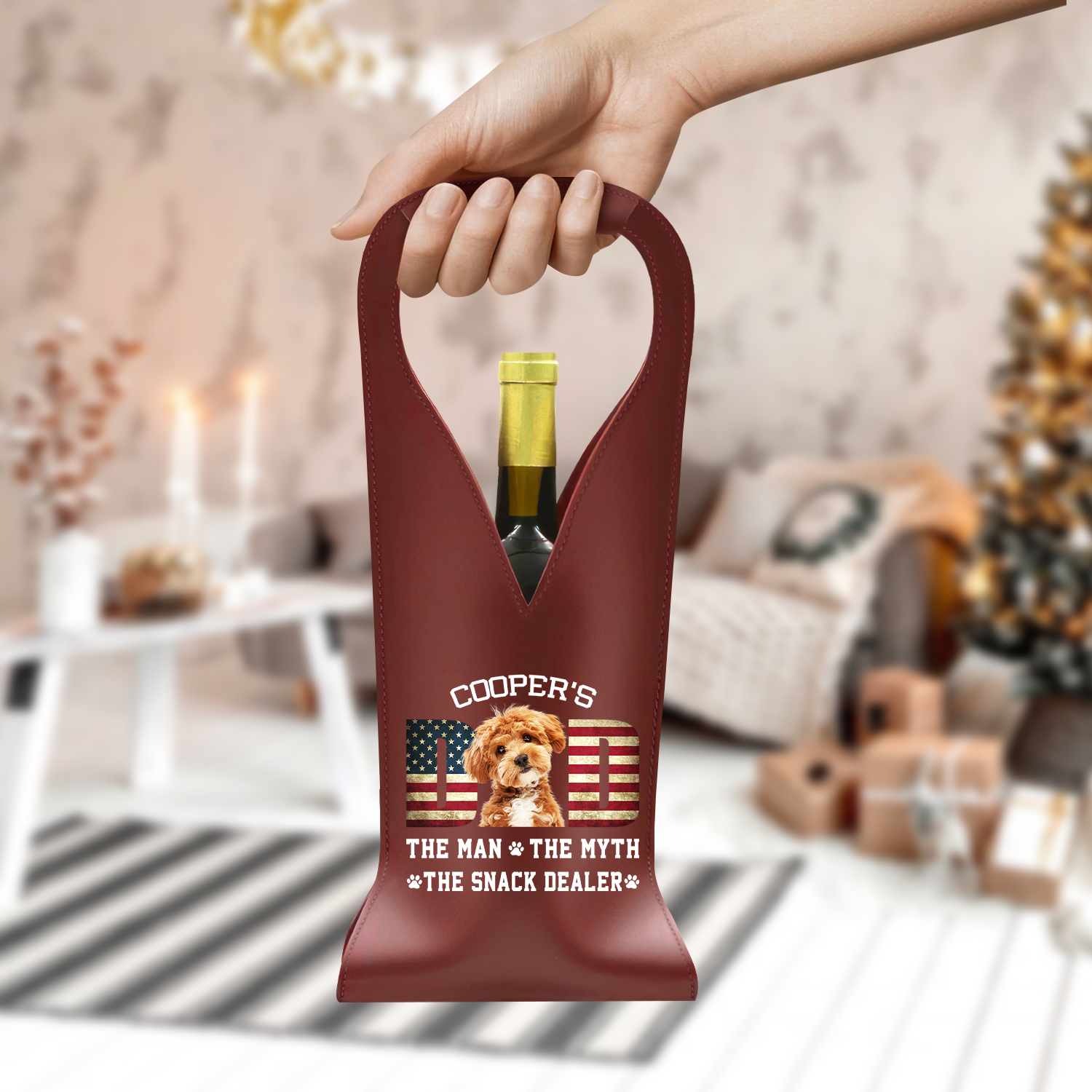 Celebrate the special bond with your dog dad using this Custom Photo Dog Dad Leather Wine Bag. Featuring a personalized photo and an American flag design, it’s a unique and thoughtful gift that combines style and sentiment. Perfect for the man who cherishes his furry friend, this leather wine bag adds a personal touch to any occasion, making it the best customized gift idea for dog dads who appreciate quality and meaning.