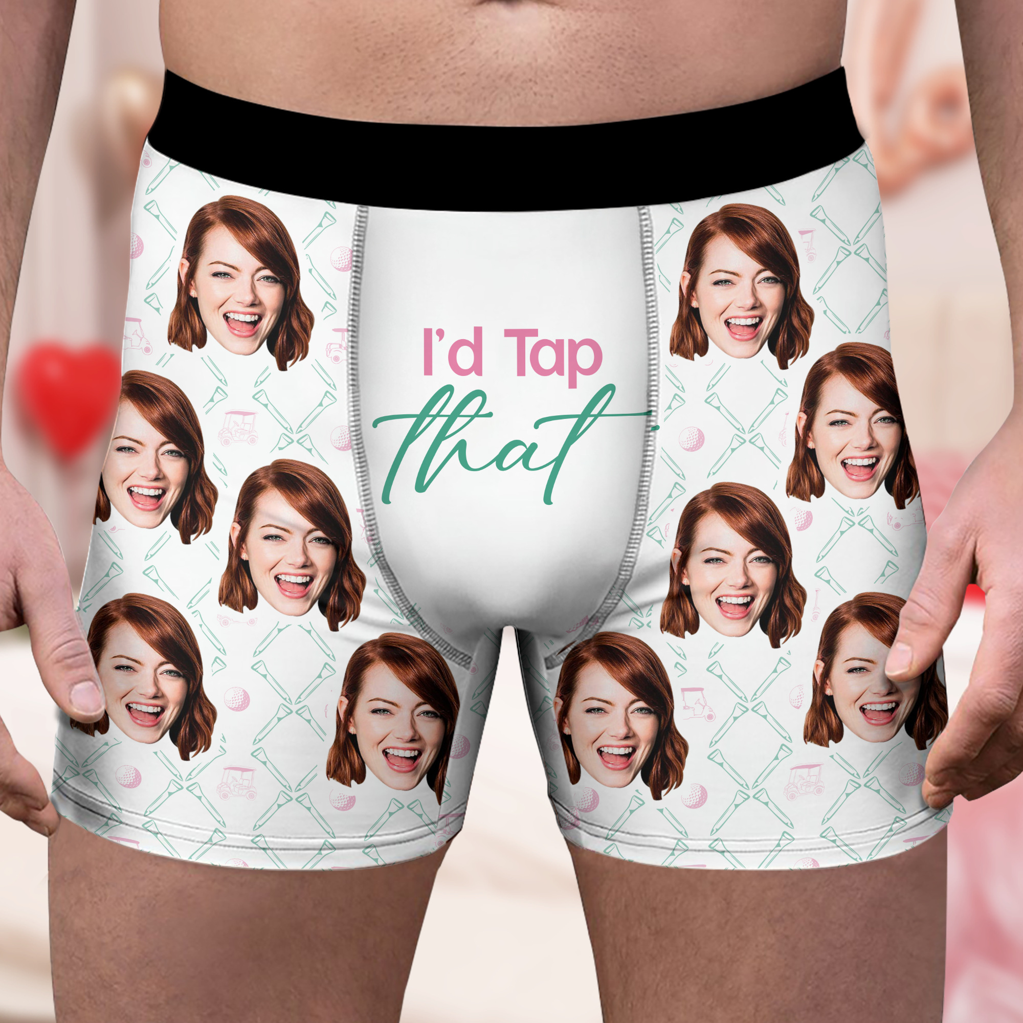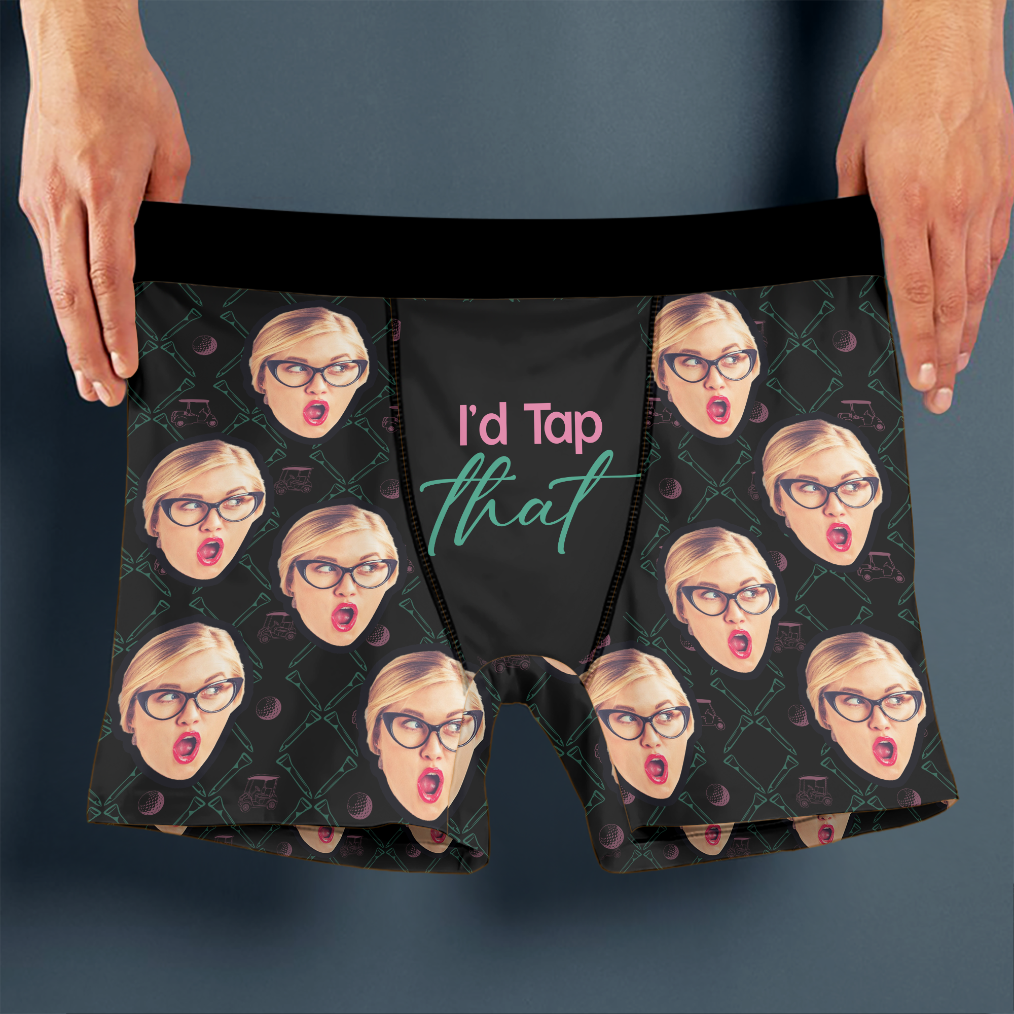 Give the golfer in your life a gift that scores big laughs! These custom photo "I'd Tap That" men's boxers blend humor with personalization, featuring a witty golf pun paired with a custom photo on premium fabric. Designed for comfort and style, they're perfect for the guy who loves his golf game as much as he loves a good joke. The soft, breathable material keeps him comfortable whether he's relaxing at home or getting ready for the course. This one-of-a-kind gift shows you understand his sense of humor and passion for golf—making it an instant favorite for any occasion.
