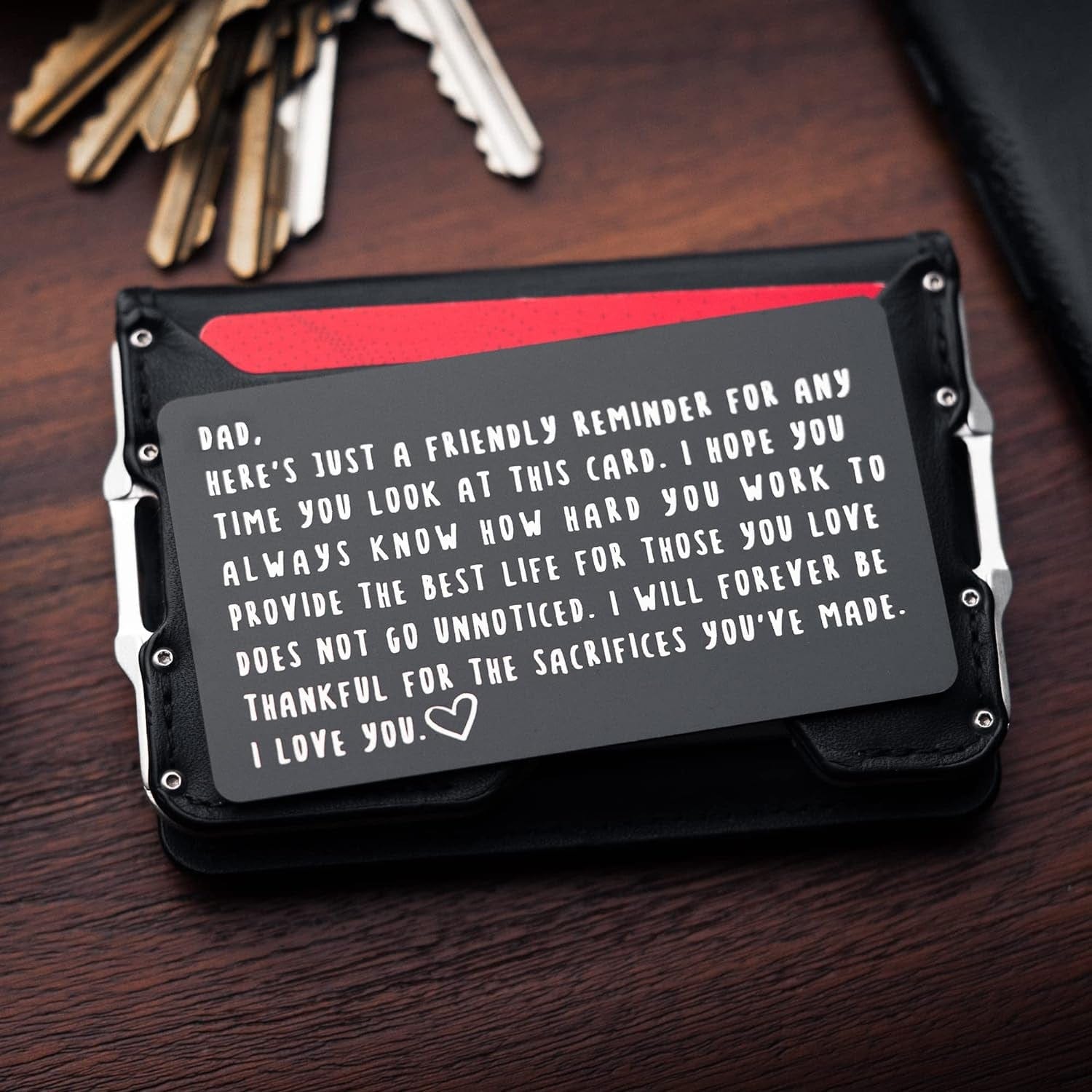 Every dad deserves to be reminded of the impact of their love and hard work! With our engraved wallet card from Red Dot Laser Engraving, you can convey your heartfelt appreciation in a durable, timeless keepsake.