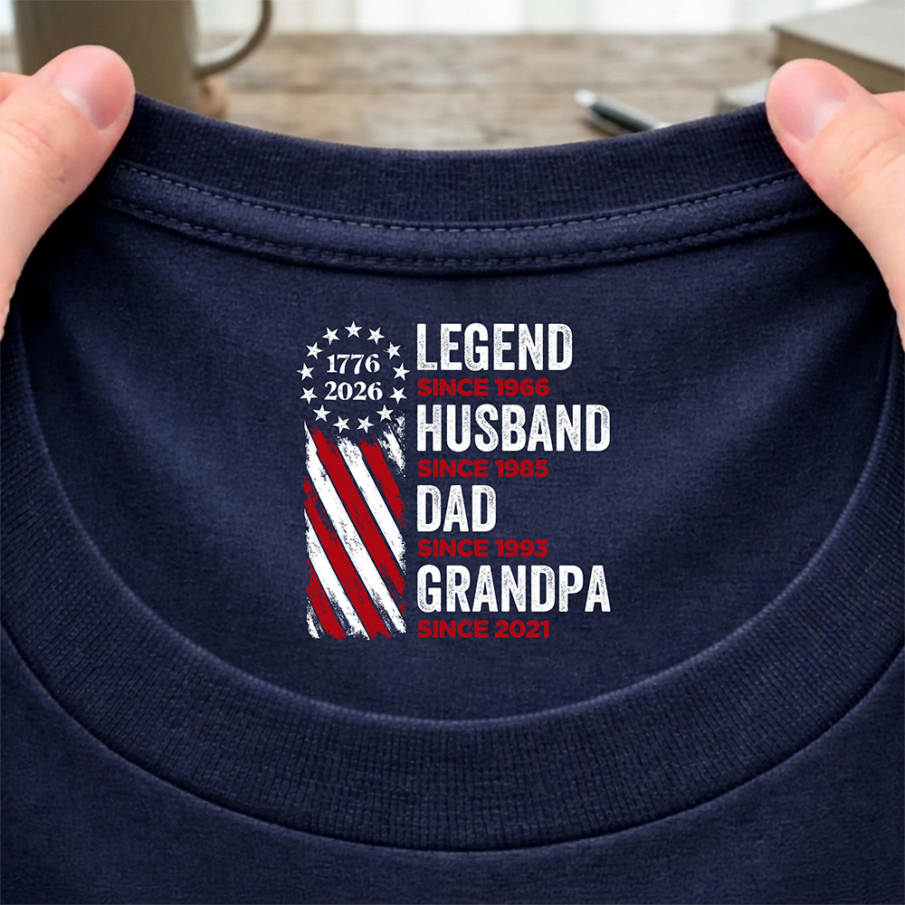 Celebrate the amazing man in your life with this personalized “Legend, Husband, Dad and Grandpa” back neck shirt. Customize it with a name or special detail to create a meaningful and unique gift. Featuring a bold message on the back, it’s perfect for everyday wear, family gatherings, and special occasions—making it a proud and heartfelt keepsake he’ll love.
