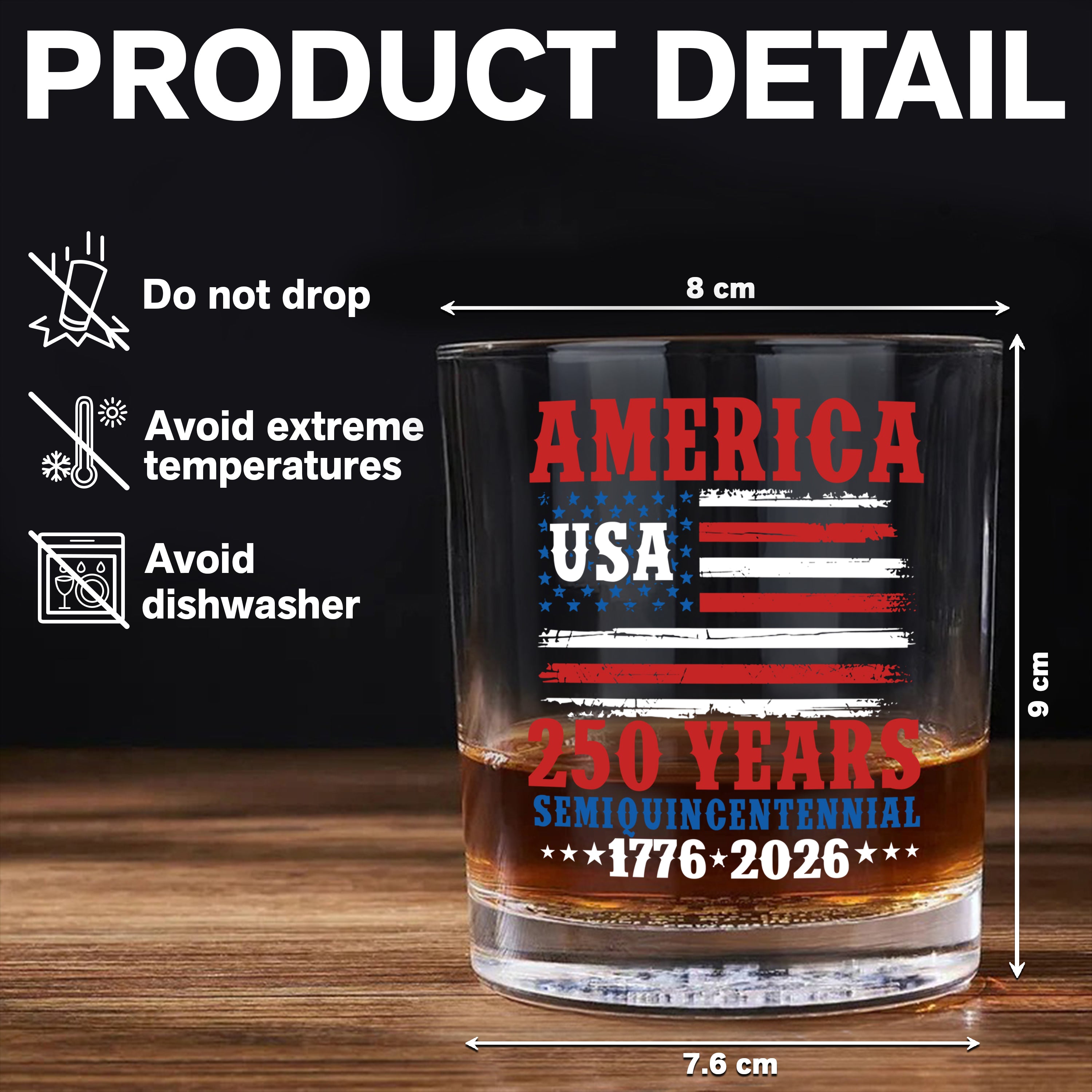 Celebrate America's 250th anniversary with this elegant whiskey glass, crafted for those who appreciate both history and fine spirits. Designed to enhance your drinking experience, its timeless style honors a quarter millennium of American heritage. Perfect for savoring your favorite whiskey while reflecting on 250 years of tradition and progress. Elevate your collection with this unique commemorative glass that combines patriotism and sophistication in every sip.