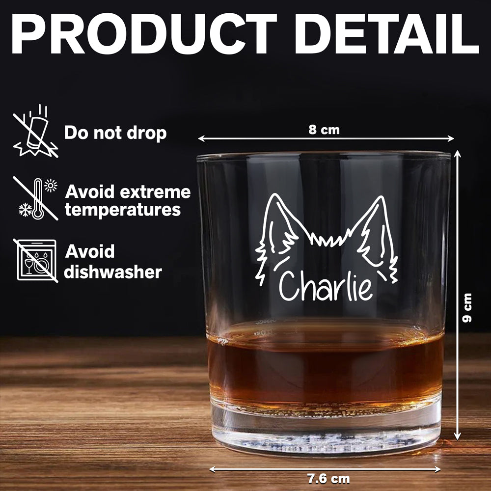 Raise a toast to your four-legged best friend with this charming personalized whiskey glass. Featuring adorable dog ear designs, this custom glass transforms ordinary moments into memorable celebrations of your love for dogs. Perfect for whiskey enthusiasts and devoted pet parents alike, it makes an ideal gift that combines sophistication with playful personality. Each glass can be personalized to add a special touch that's uniquely yours. Whether you're unwinding after a long day or hosting friends, this distinctive drinkware brings warmth and character to every sip. A must-have for anyone who treasures their canine companion.