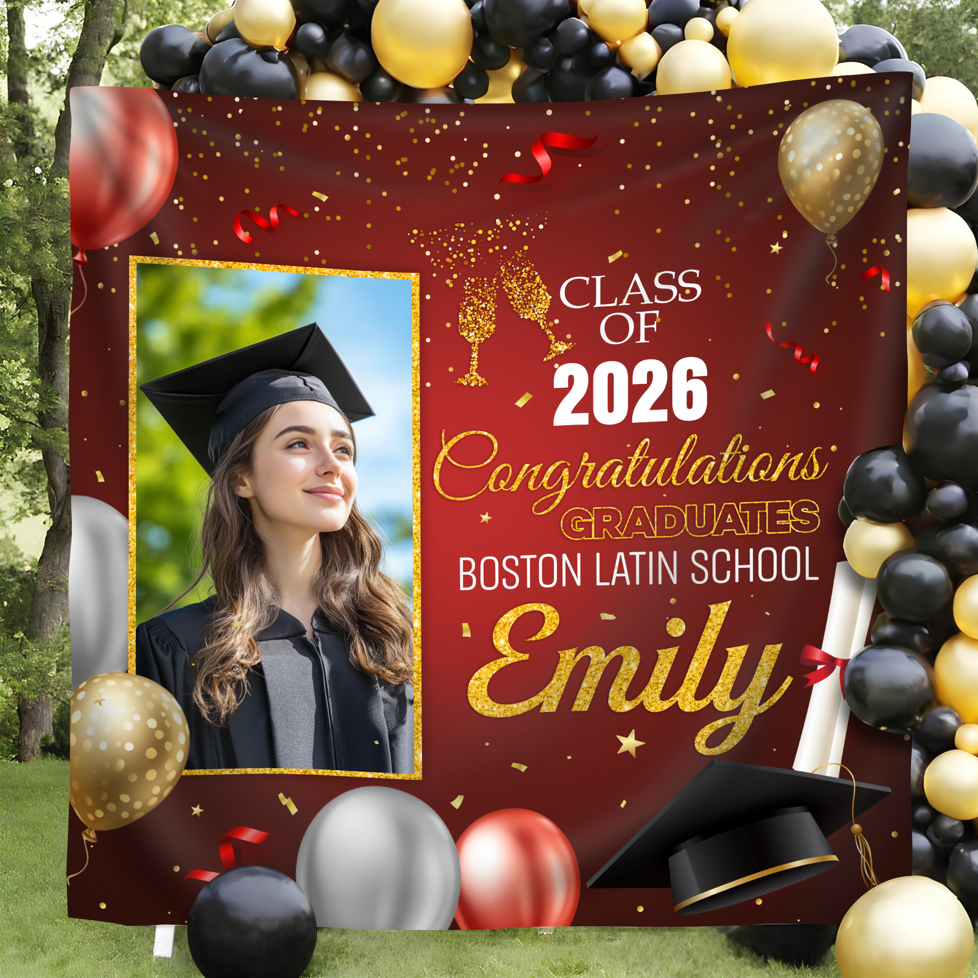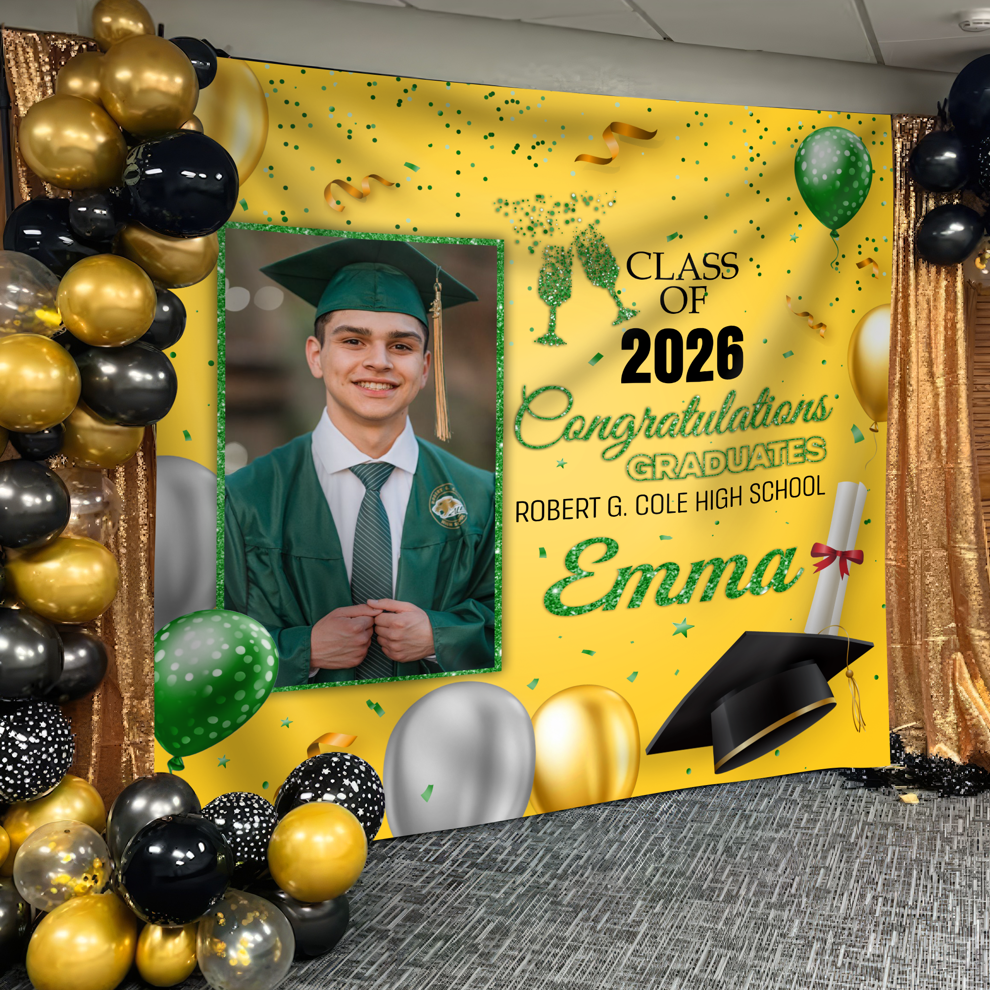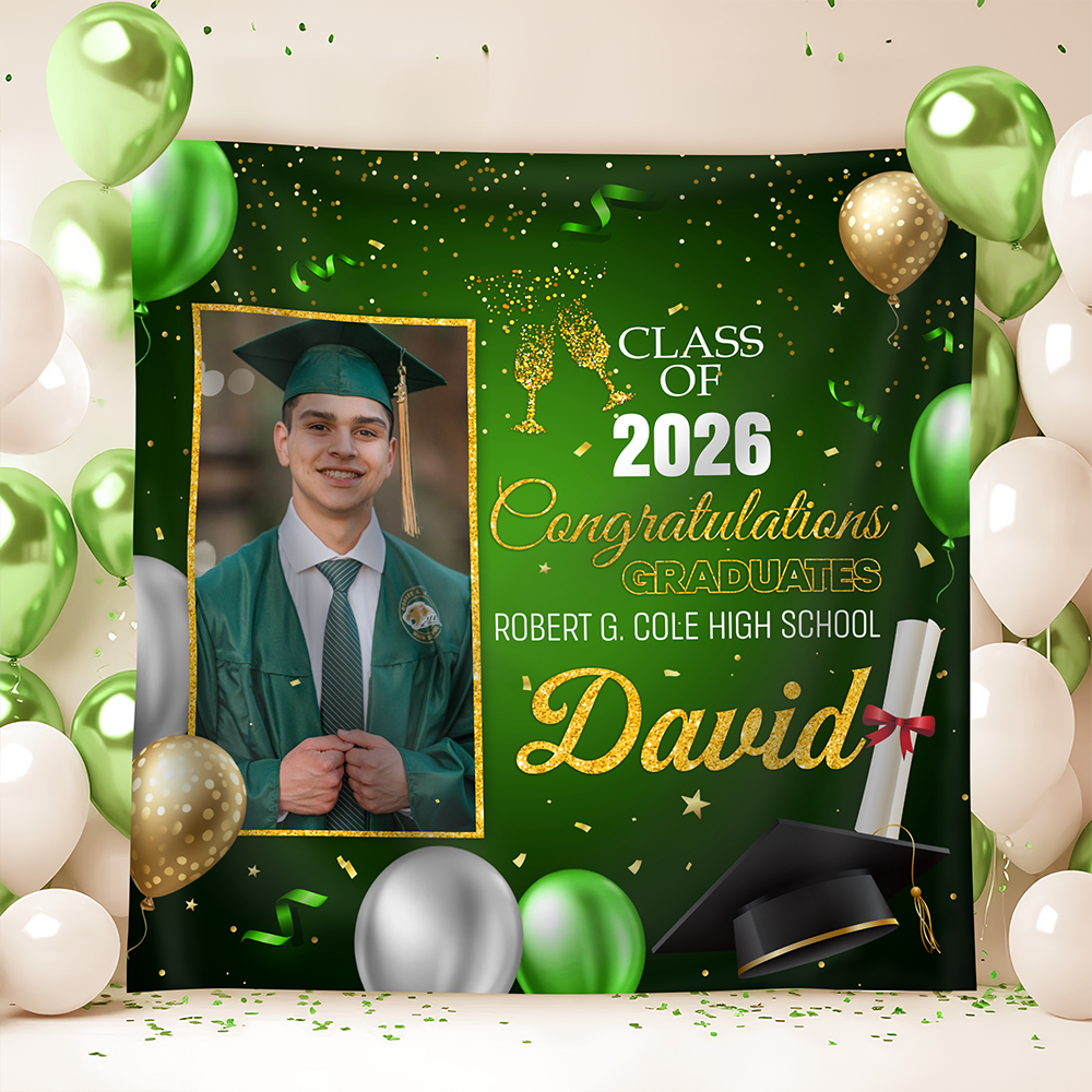 Celebrate your Class of 2026 milestone with a stunning custom photo backdrop designed to capture unforgettable graduation moments. This personalized backdrop transforms any venue into a professional photo booth setting, perfect for capturing candid shots, group photos, and cherished memories with classmates. Whether you're hosting an intimate gathering or a large celebration, this backdrop provides the ideal backdrop for social media-worthy images and keepsakes. Customize it with your school colors, class year, and personal touches to make your graduation day truly one-of-a-kind. Create lasting memories that reflect your achievement and celebrate this pivotal moment in style.