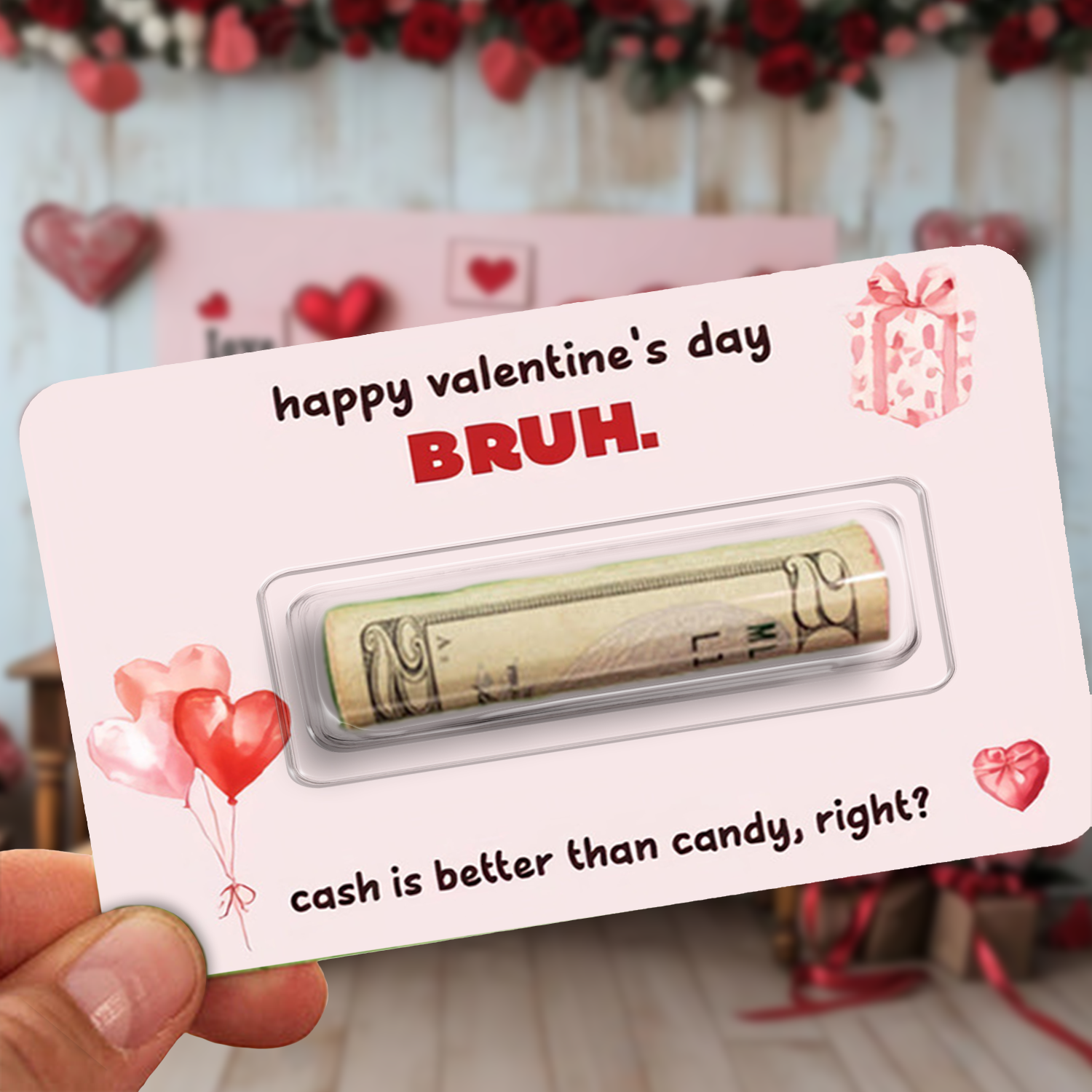 Celebrate your love with a gift that's both thoughtful and practical. This custom Valentine's Day money holder card brings humor and heart to your gesture, making it the perfect way to give cash or gift cards to the special couple in your life. Personalize it with their names or a sweet message to create a keepsake they'll treasure long after Valentine's Day. Funny, functional, and uniquely theirs—because the best gifts show you truly know them.