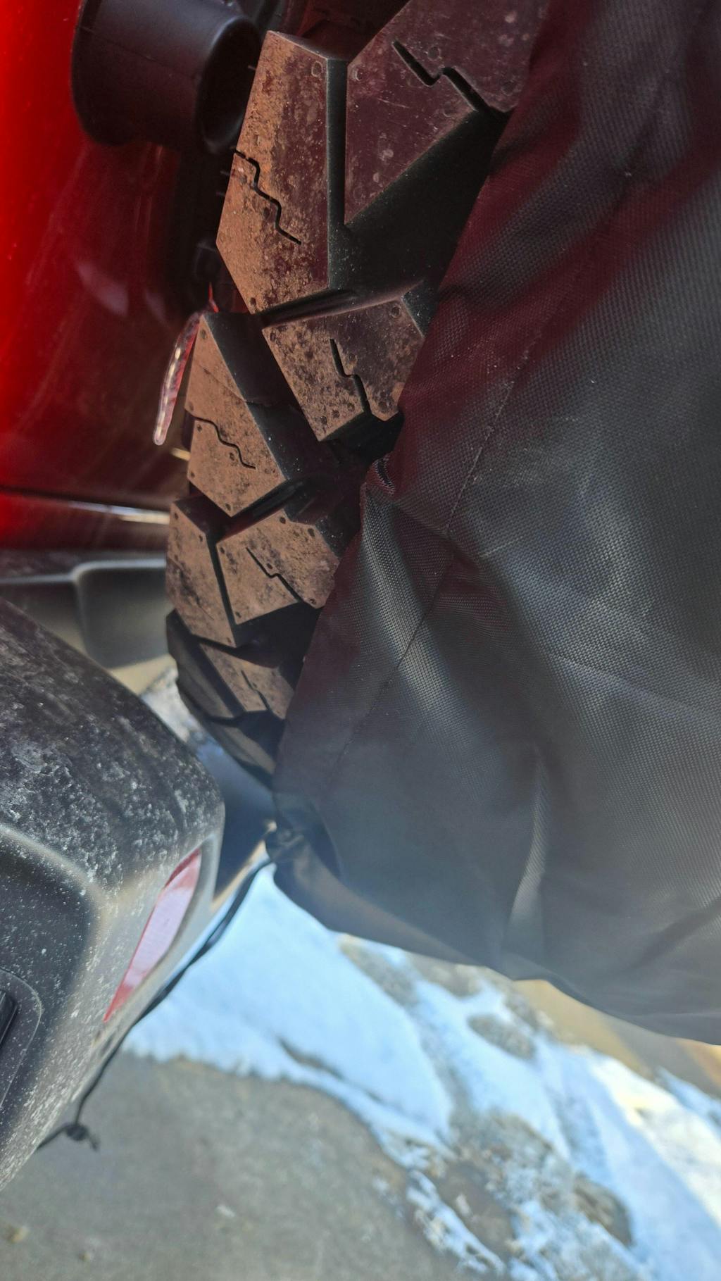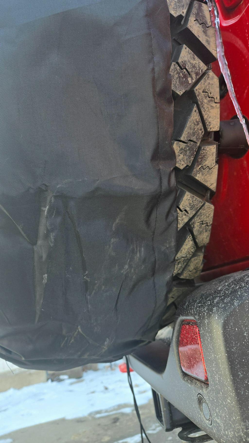 Ordered the tire cover for what they list as 34"/35" tires. When product arrived it is not deep enough to fit properly around a 35" tire without blowing off as you drive down the road. As you can see it wont wrap around the whole rire.