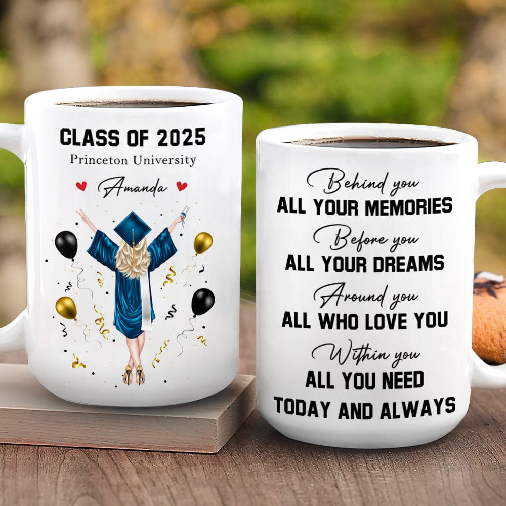 Celebrate your graduate's achievements with our personalized graduation mug! The perfect gift for any occasion, our mug features a sleek design and customizable text. A daily reminder for the graduate to chase their dreams and never give up!