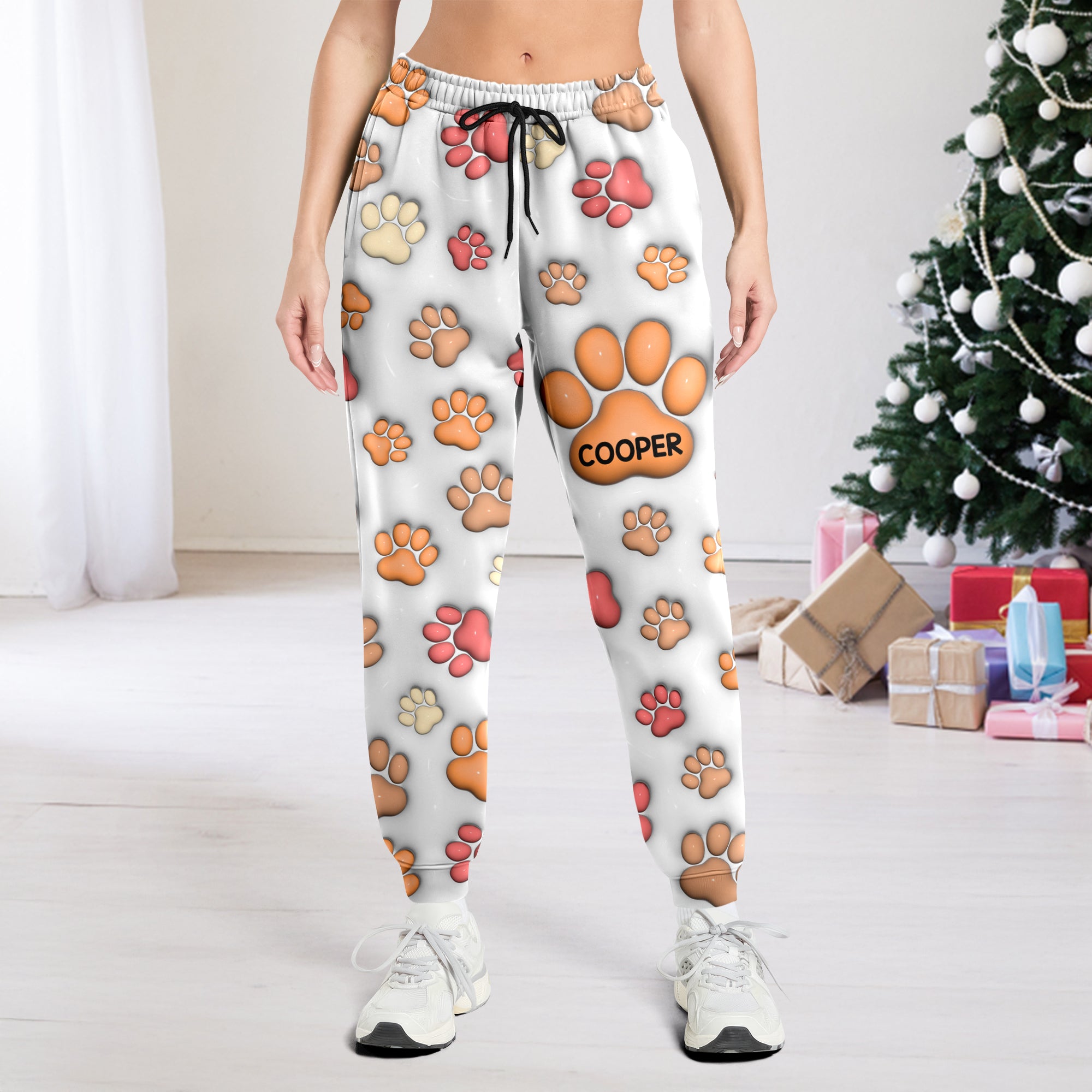 Celebrate the holiday season in style with these Custom Name On Dog Paw 3D Effect Sweatpants, perfect for dog lovers. Featuring a unique 3D paw design personalized with your pet’s name, these cozy sweatpants combine comfort and festive spirit. Ideal for Christmas, they make a thoughtful gift or a joyful treat for yourself, keeping you warm while showcasing your furry friend's charm wherever you go. Embrace warmth, personalization, and holiday cheer all in one fashionable pair.