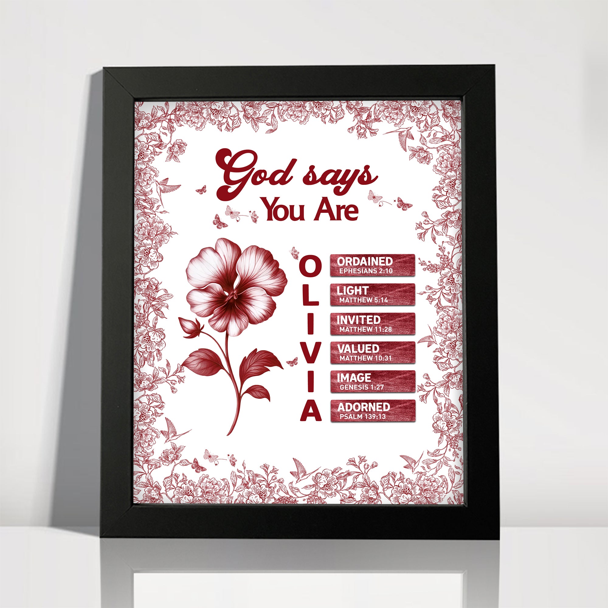 Custom Name Letter And Flower Toile De Jouy Style God Says I Am Picture Frame LM32 895395