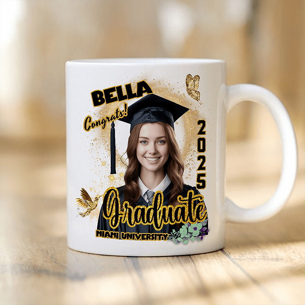 Celebrate the accomplishment of your loved one with our Custom Photo Graduation 2025 White Mug! Remind them of their hard work every time they enjoy their favorite drink. A unique keepsake gift for proud grads and a perfect way to say "Congrats!"