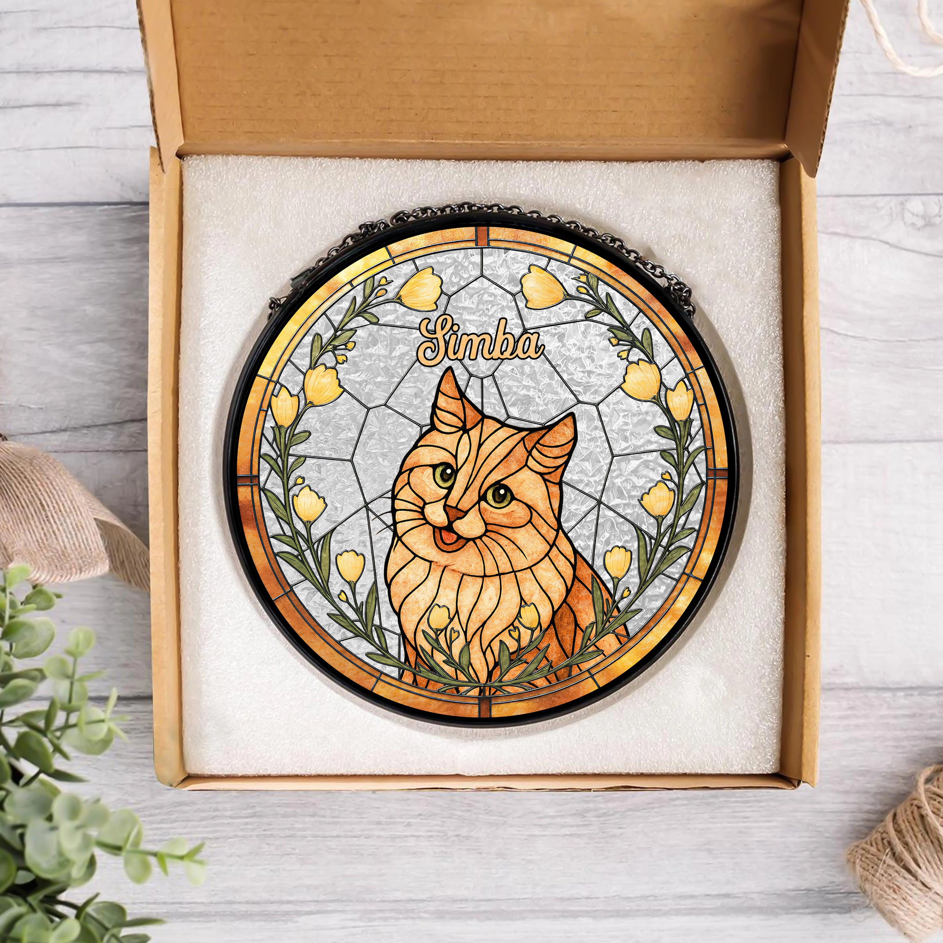 Custom Cat Photo With Flower Memorial Stained Glass Suncatcher, Pet Loss Gift HO82 894328