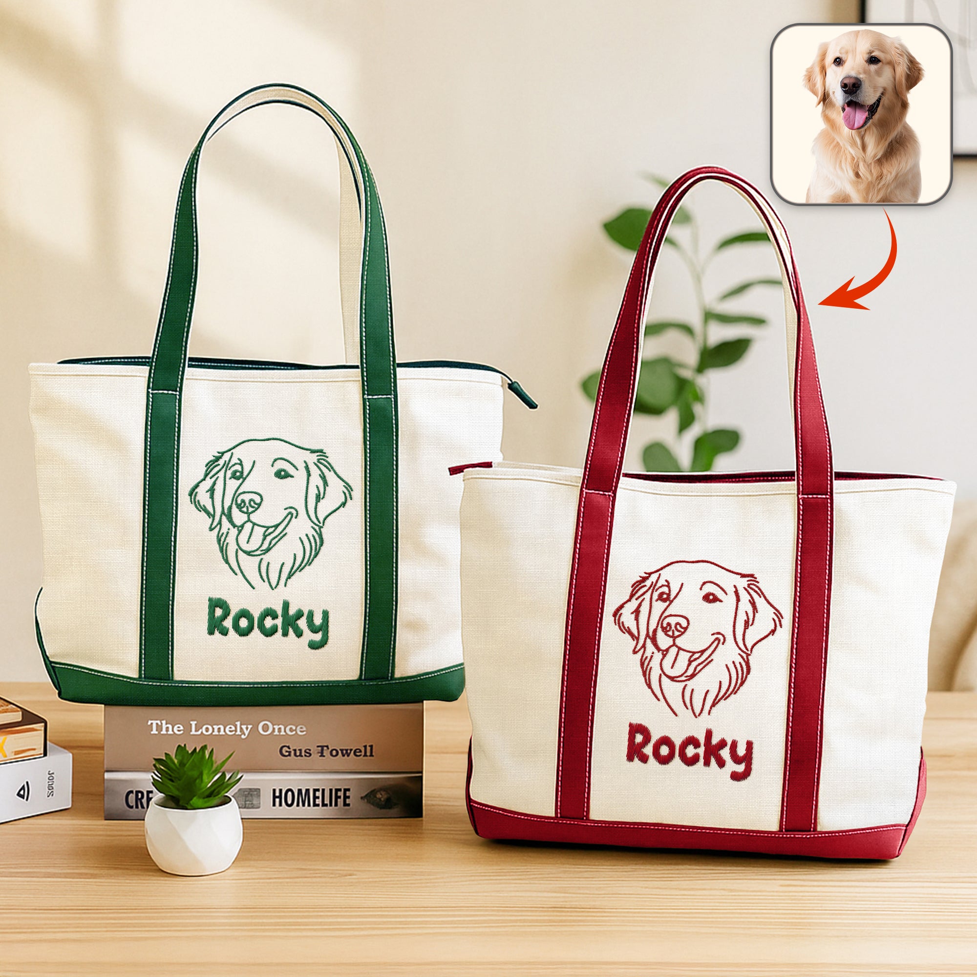 Carry your love for your furry friend wherever you go with this Custom Pet Face Embroidered Monogram Beach Bag. Personalized with your pet’s face and monogram, it’s a unique and stylish accessory perfect for dog lovers. Spacious and durable, it’s ideal for beach days, errands, or casual outings, making it a thoughtful gift that celebrates your special bond.