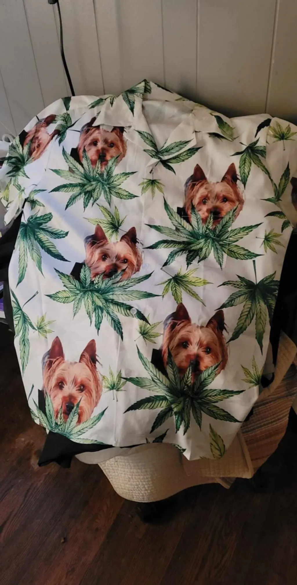 Are you finding a Hawaii shirt for a party in the summer? Our Hawaii shirt with the weed-themed pattern is one of the wonderful selections for you, especially if you are a dog lover. By uploading some photos of your dog and choosing a background you love the most to print on this shirt, you will make everyone extremely surprised and excited with this unique shirt of yours. Practical and comfortable, the Hawaii shirt will be your ally with all your walks by the sea. Let's give it to your friend or family to make the best trip ever.
