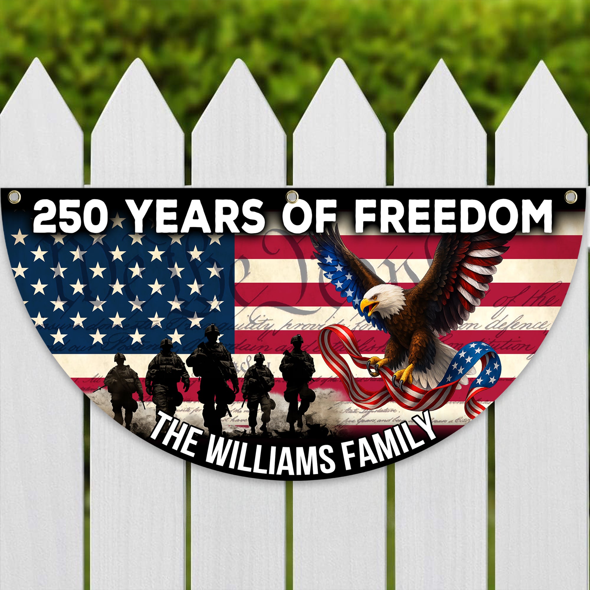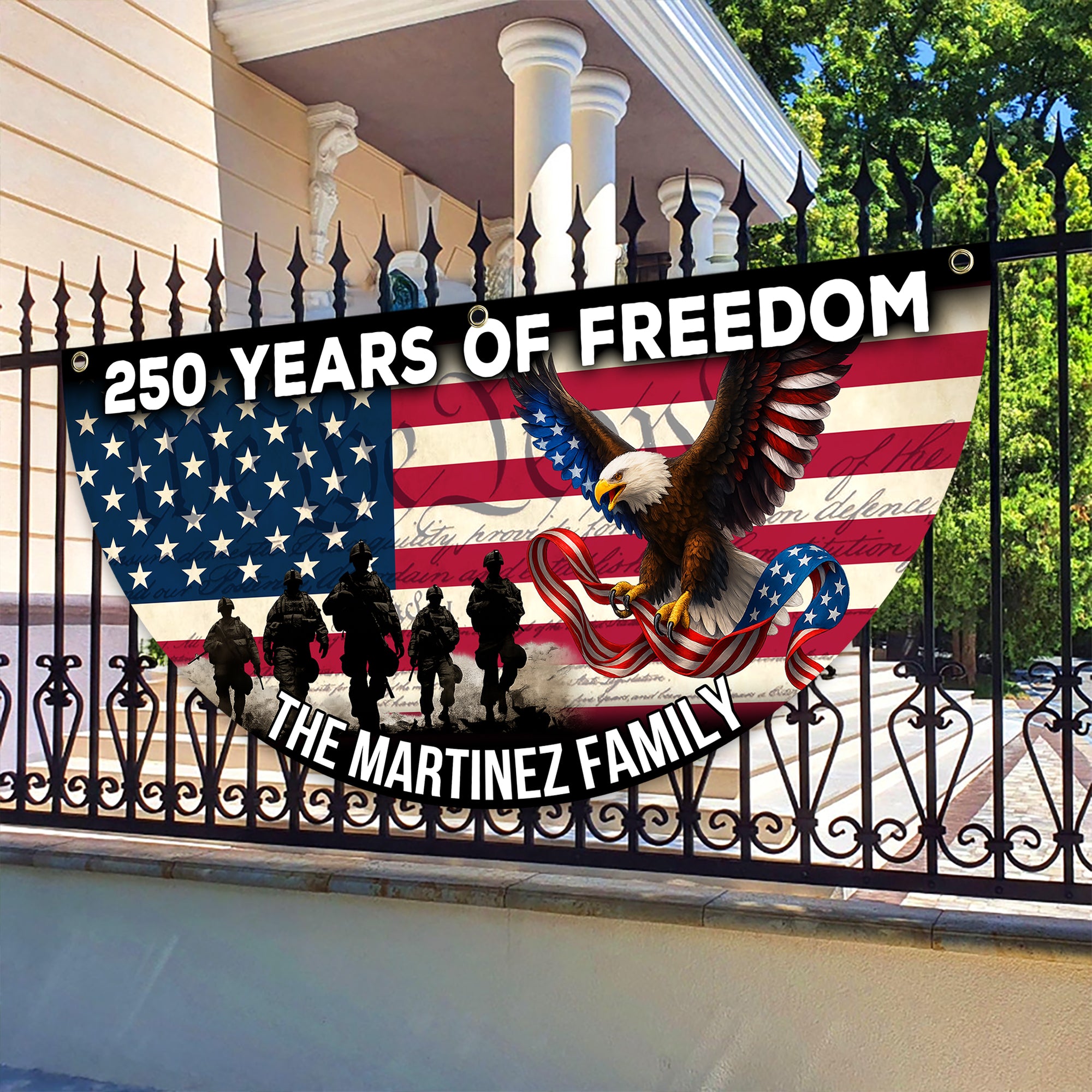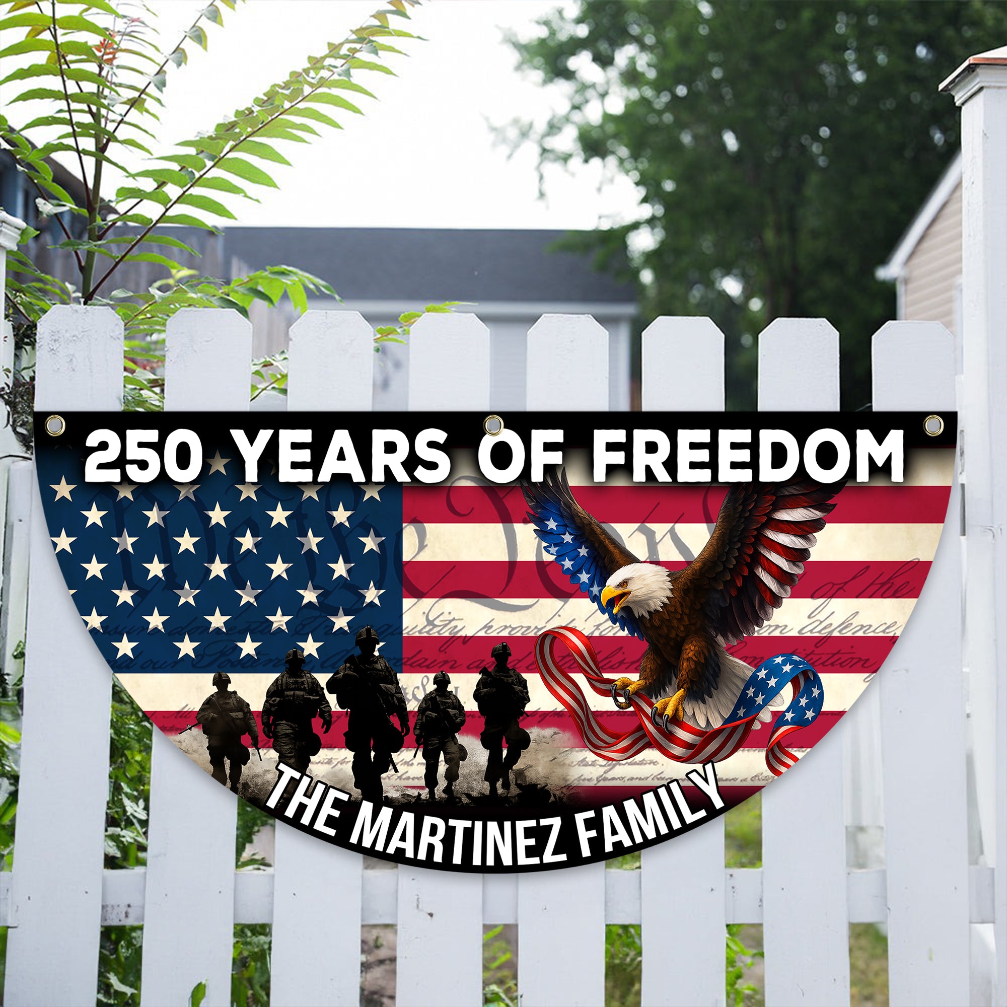 Celebrate your family's heritage with this striking Custom Family Name 250 Years of Freedom Non-Pleated Fan Flag. Designed to honor America's legacy, this flag features personalized family naming alongside patriotic symbolism, making it a meaningful addition to any home or gathering space. The non-pleated fan design ensures elegant draping and effortless display, while quality construction guarantees durability through seasons of proud display. Perfect for Independence Day celebrations, family reunions, or year-round patriotic décor, this customizable flag transforms your space into a tribute to freedom and family pride. Make your statement bold and personal.