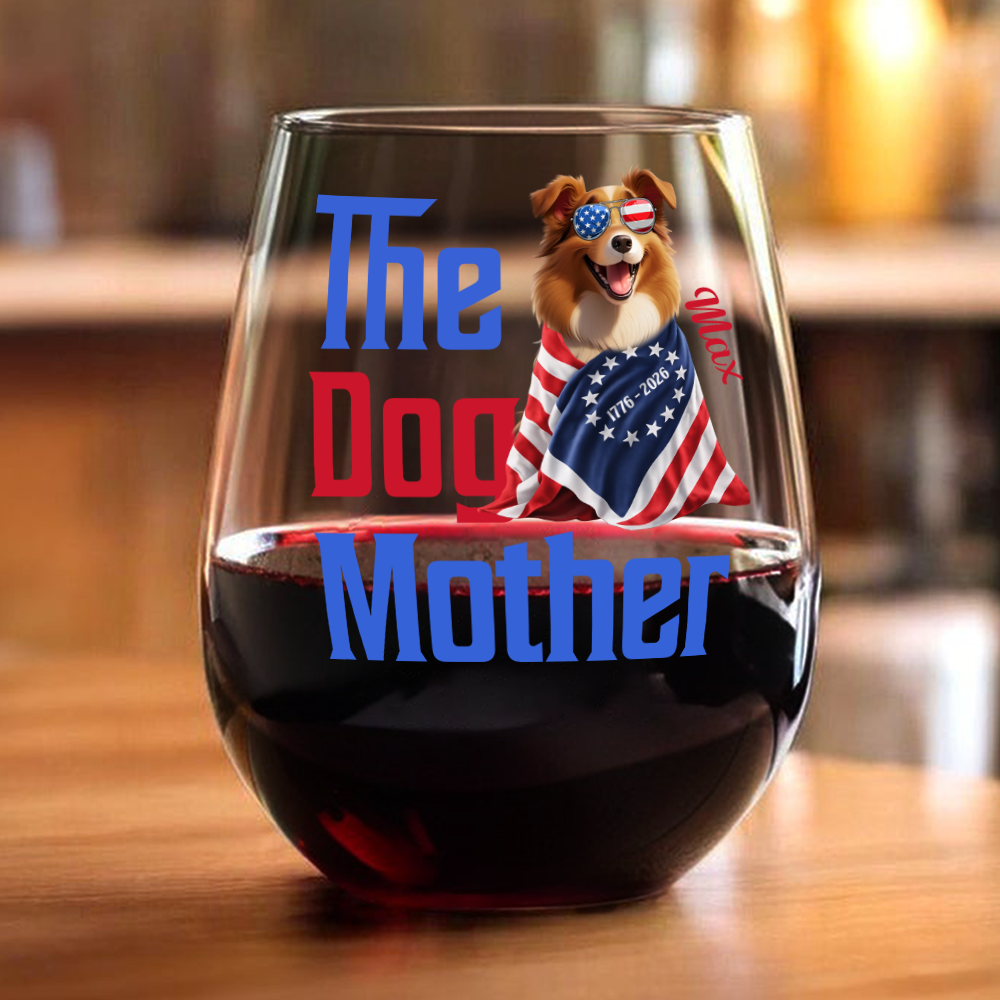 Celebrate America's milestone and your love for your furry best friend with this commemorative wine glass. Featuring "The Dogmother" or "Dogfather" design paired with the 250th USA Anniversary emblem, it's the perfect blend of patriotic pride and pet parent humor. Crafted for durability, this glass makes an ideal gift for dog lovers who appreciate both their country and their canine companions. Raise a toast to 250 years and countless paws!