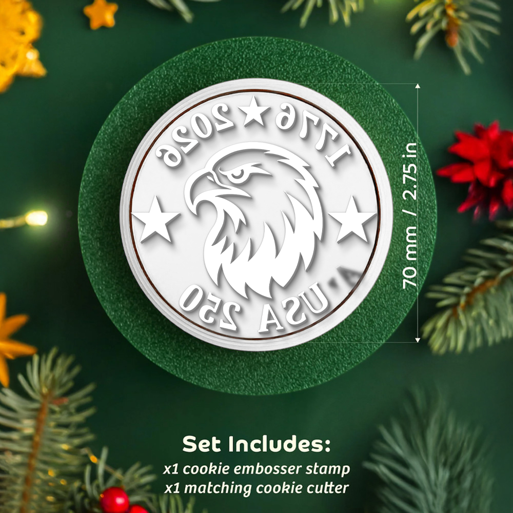Celebrate a historic milestone with this “250 Years of America” anniversary cookie stamp, featuring a striking eagle design and “1776–2026” detail. Perfect for creating patriotic treats, it adds a unique touch to parties and special celebrations. Designed for easy use, it delivers clean and detailed imprints on your cookies. A fun and memorable keepsake for honoring this once-in-a-generation event.