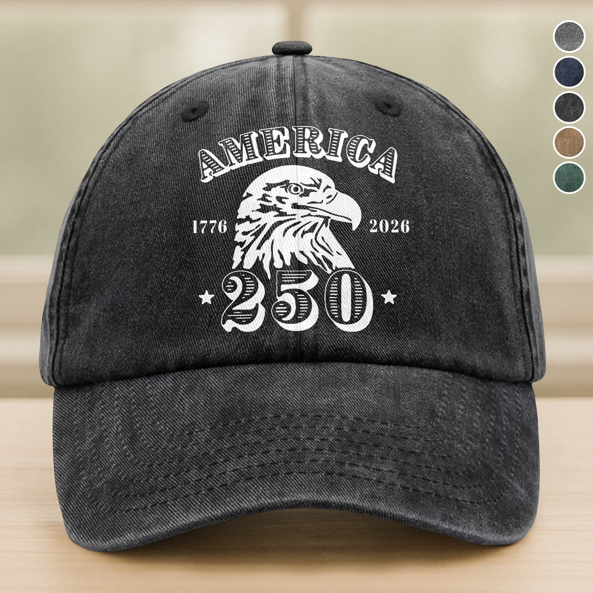 Celebrate America's 250th anniversary with this stylish Washed Denim Baseball Cap. Designed for comfort and durability, it features a classic look that honors this historic milestone. Perfect for everyday wear, show your patriotic pride while enjoying a timeless accessory made to last.